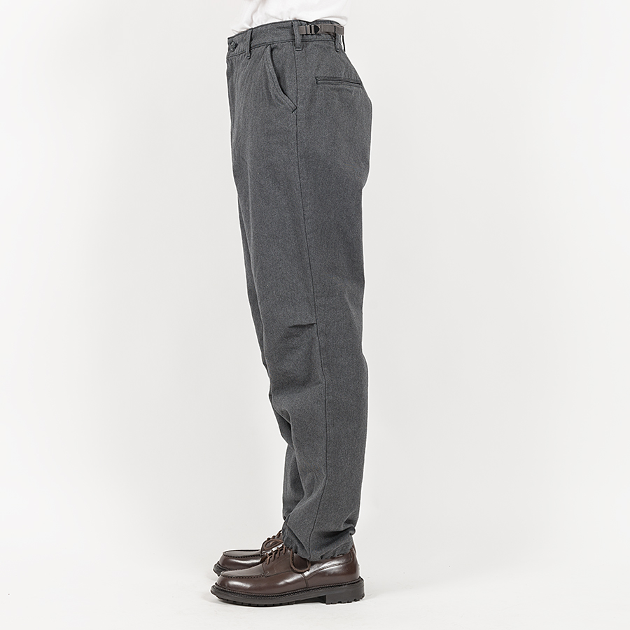 ポイント、自由にテーパードシルエットを作り出せます。秋冬はフロントをファスナーに。ウェストの調整バックルがあ