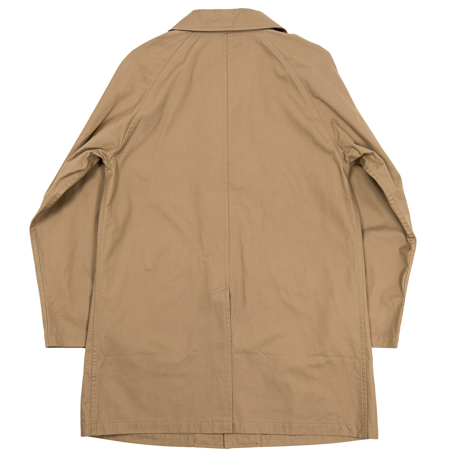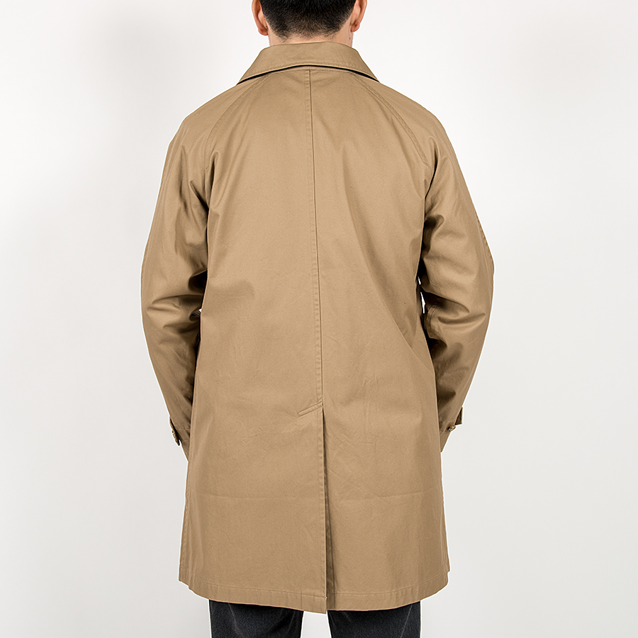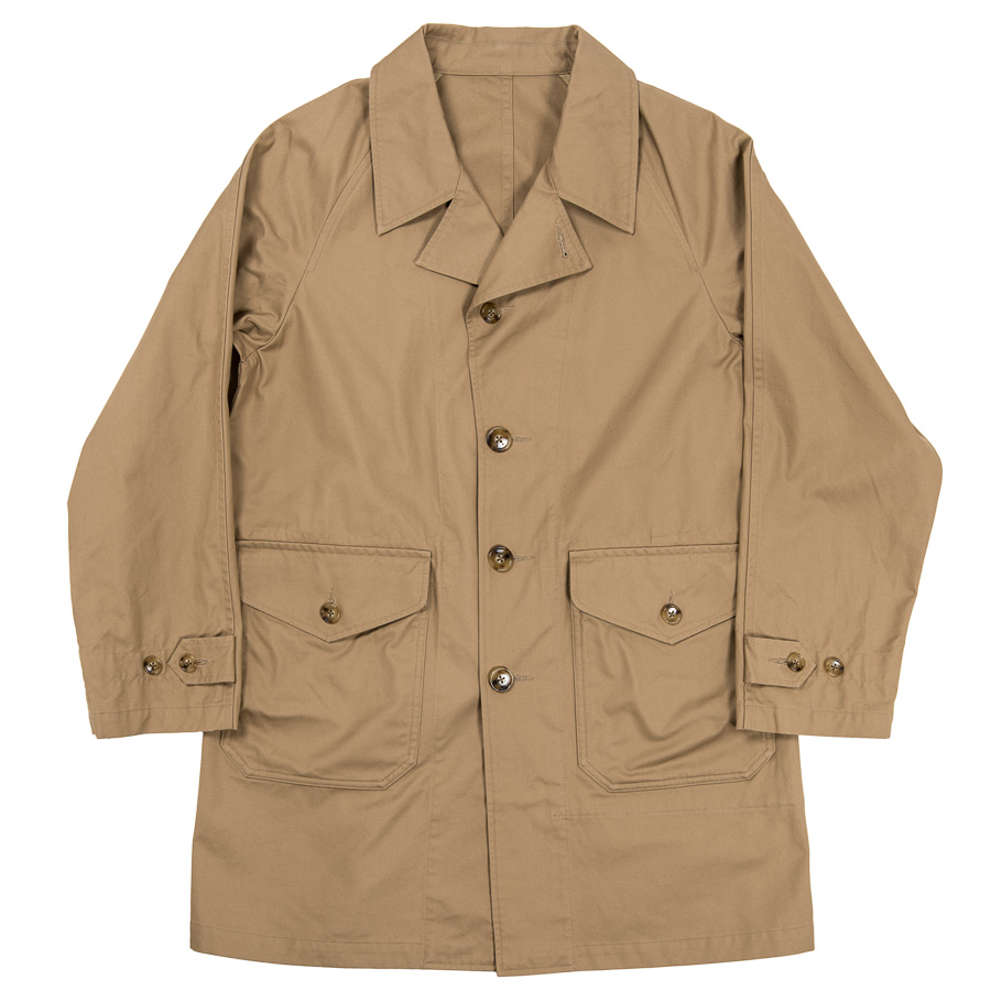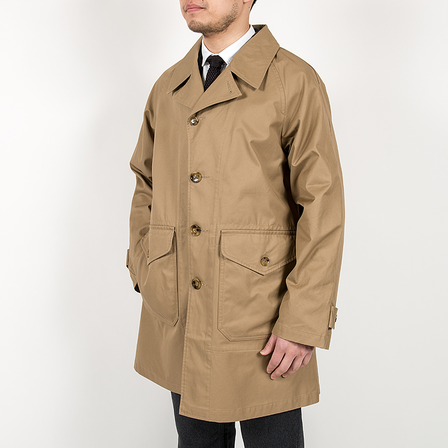 8.5オンス程度でかなり重い綾織。そうなると、裏地をつけるとどこまでも重くなってしまう。この10年ほど、袖が細いシルエットが多かったので、裏地をつけないと袖が通りづらかったのです。ただ、ここのところゆり戻しで、またゆったりとしたシルエットも通用するのでならば!と裏地をつけない、ゆったりしたシルエットでコートにしました。
