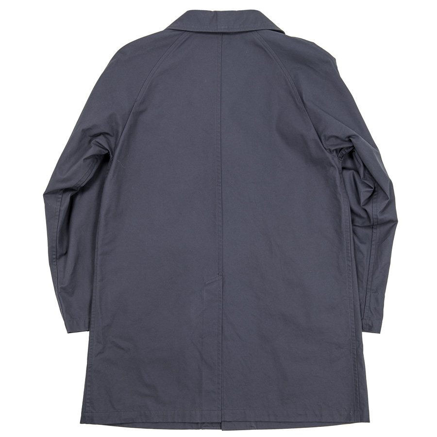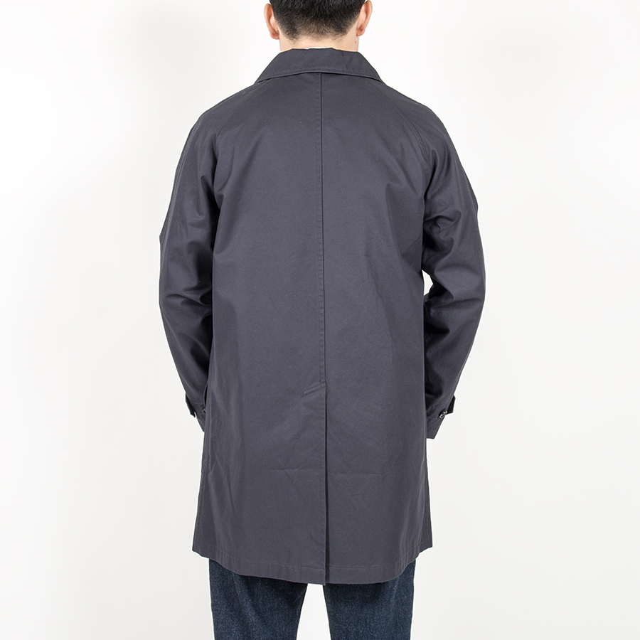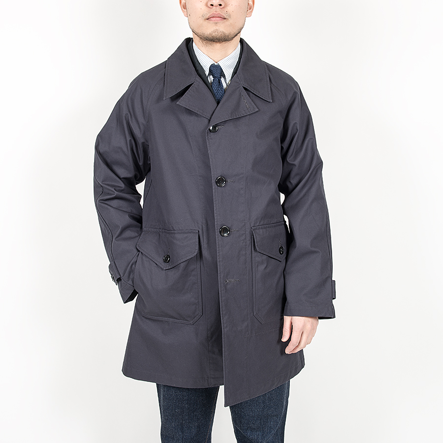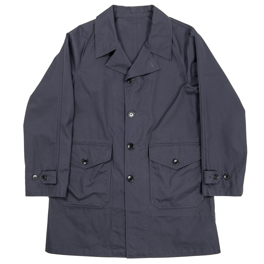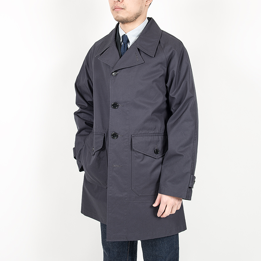 8.5オンス程度でかなり重い綾織。そうなると、裏地をつけるとどこまでも重くなってしまう。この10年ほど、袖が細いシルエットが多かったので、裏地をつけないと袖が通りづらかったのです。ただ、ここのところゆり戻しで、またゆったりとしたシルエットも通用するのでならば!と裏地をつけない、ゆったりしたシルエットでコートにしました。