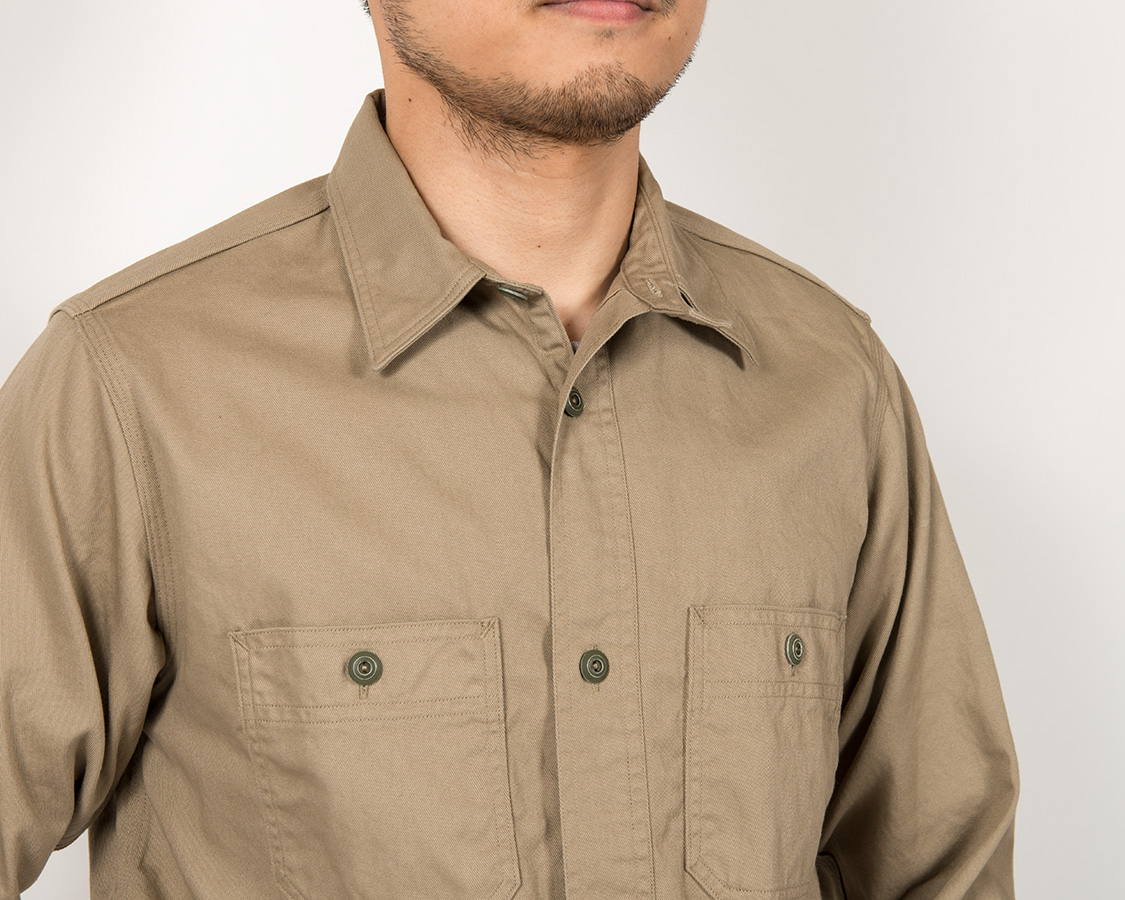 Metal Button Work Shirt, Beige Twill |