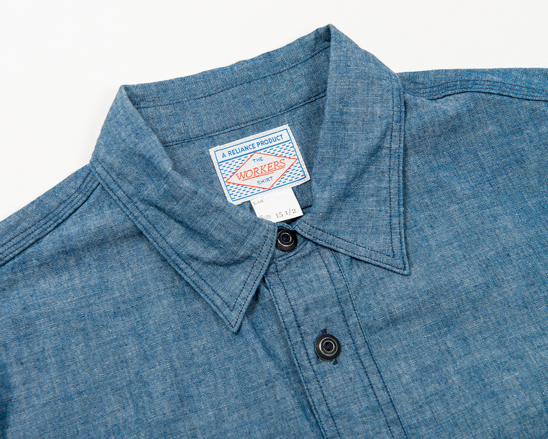 | Metal Button Work Shirt, Blue Chambray |