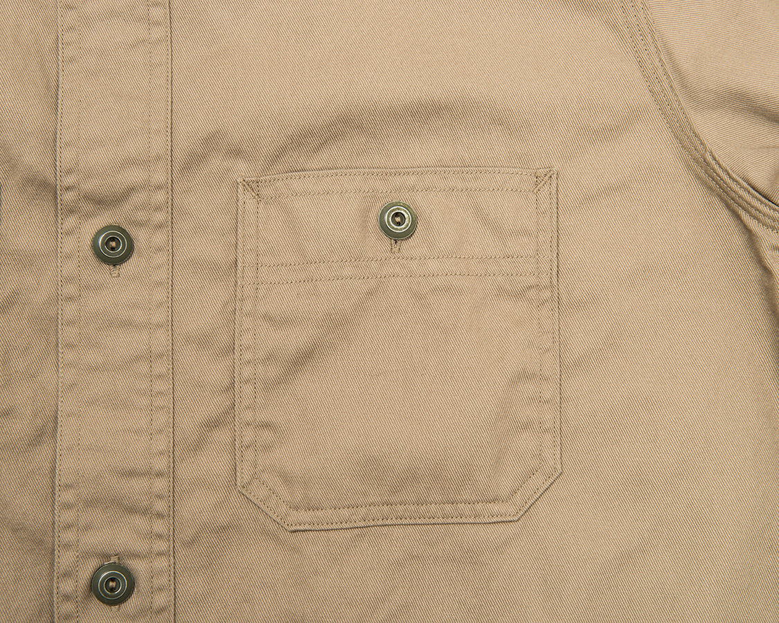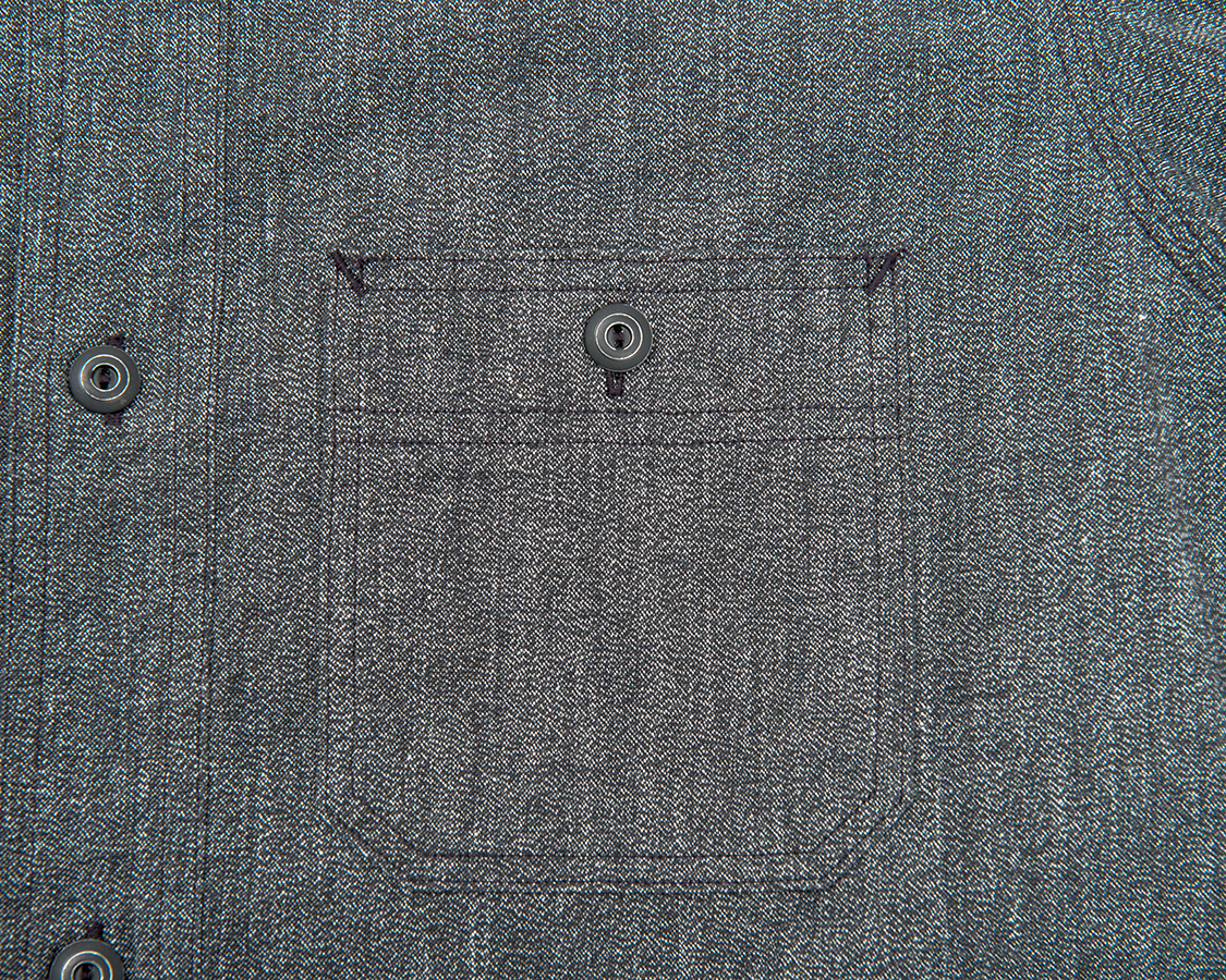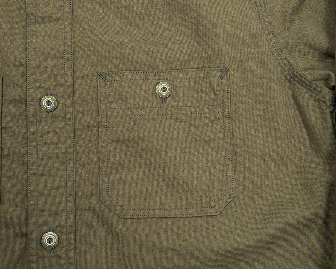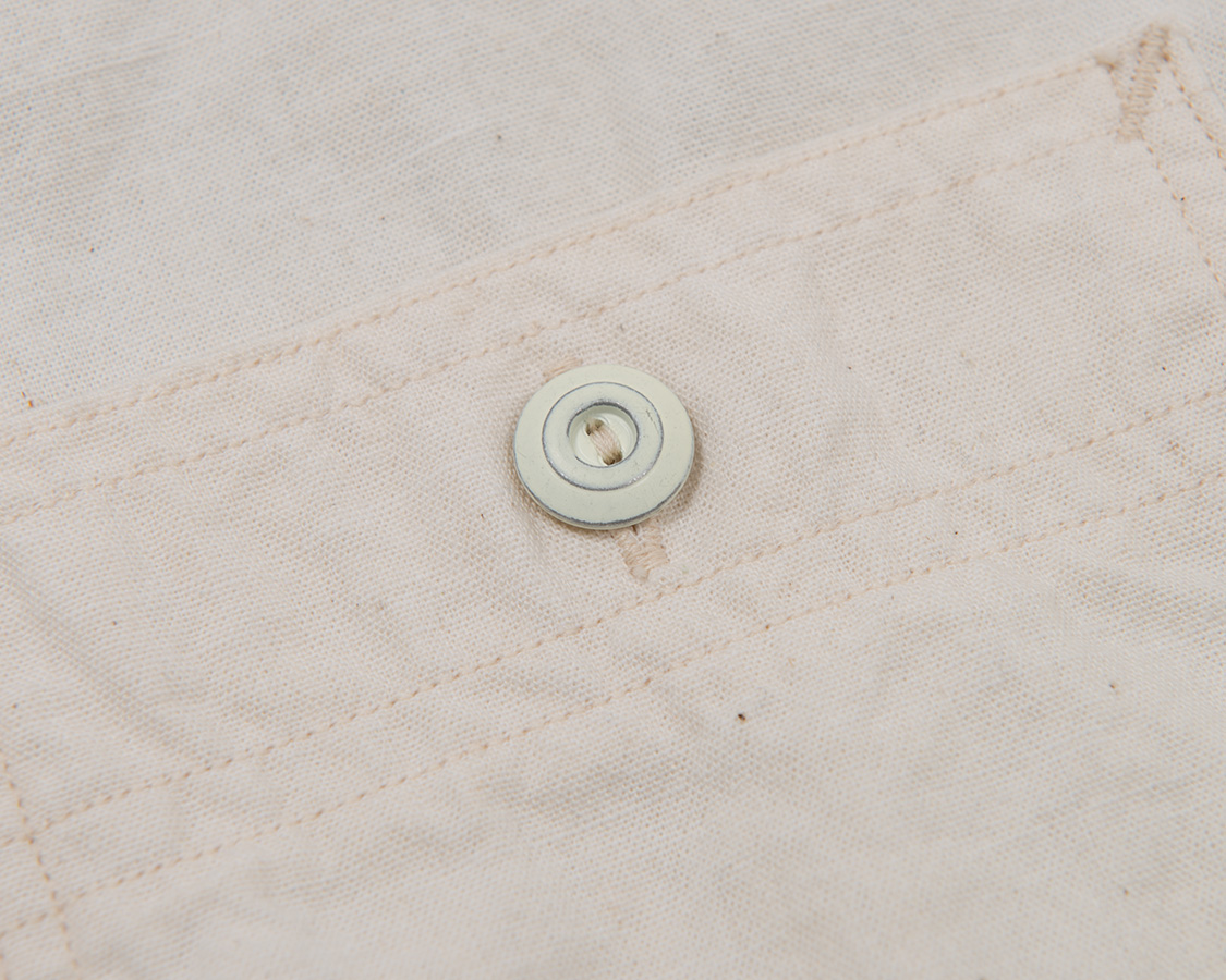 もっと、太い糸・太い針で縫えば針のぶれは少なくなるのですが、そうすると、もっと現代的なシャツに成ってしまう。細い糸で縫うために細い針に、その結果、針がぶれて若干ステッチがよれる。これは、昔のワークシャツを再現した結果です。
