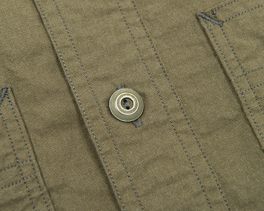 Metal Button Work Shirt, Olive Chambray |