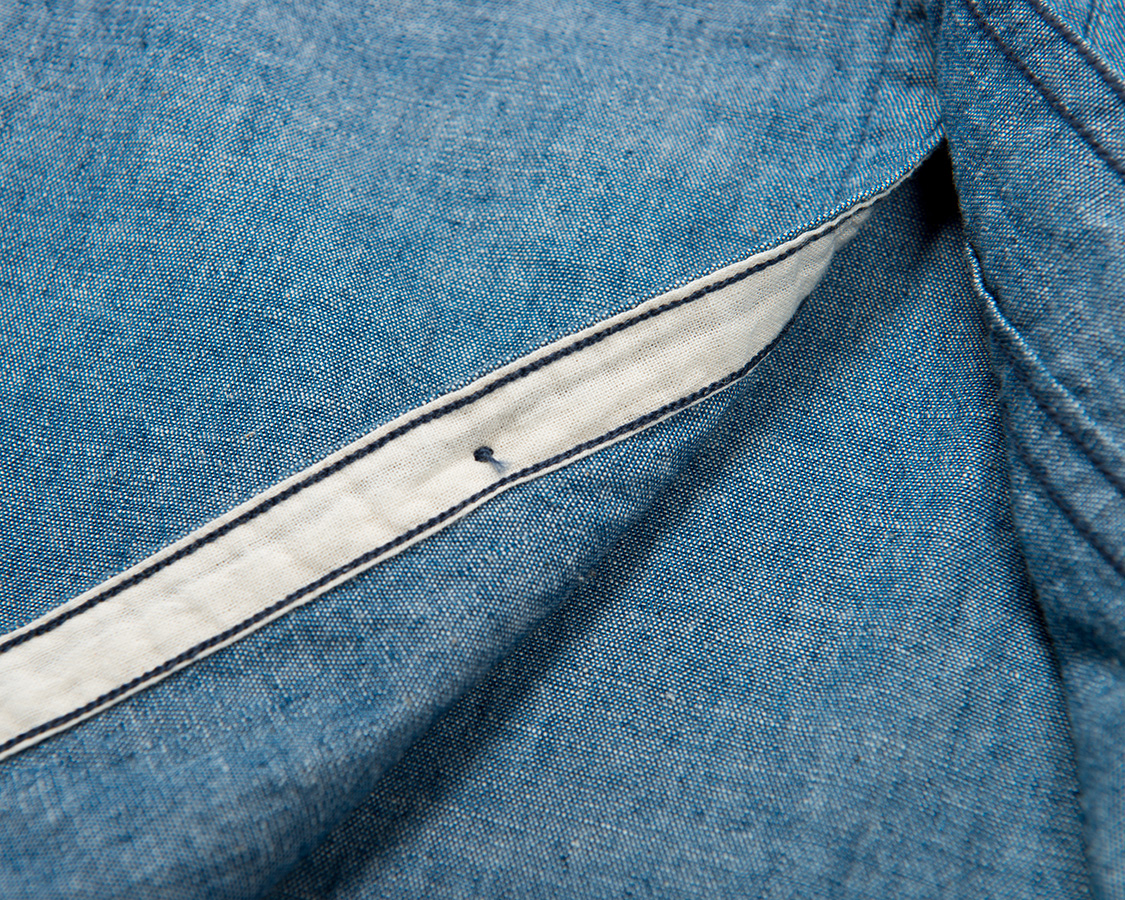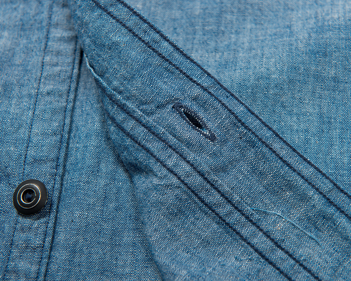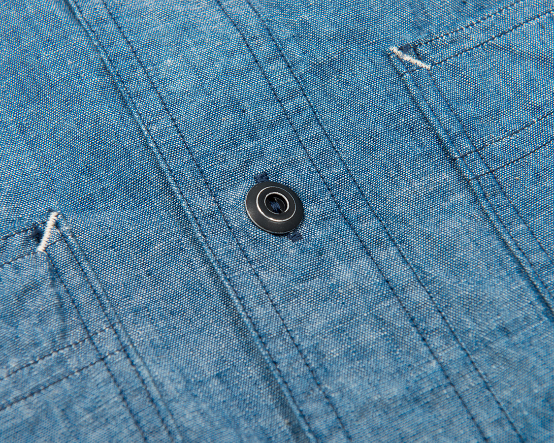 | Metal Button Work Shirt, Blue Chambray |