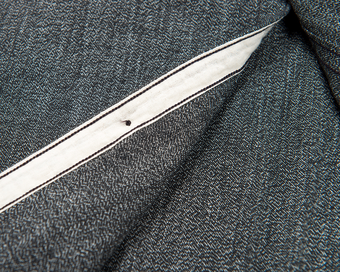 下前も針のセッティングを変え、金具を変えて、チューブ状に別布を当てます。アメリカンビンテージに見られる、当時の超大量生産向け仕様ですが、それぞれに専用ミシン・金具・セッティングがあり、今となっては再現するのは一苦労した部分です。懐かしい、10年ほど前、当時の勤め先で使われなくなって倉庫にあったコイコイのカンスペを引っ張り出してきたあの日。「なんだよ、うちにあるミシンでこの古着の仕様縫えるんじゃん!」となりました。社長や専務に「なんで使わないのか?」と聞くと「今は、パタンナーもミシンを理解していないので、前立てにしても(この巾で、コバから0.2)といった指示ばかり。それに対応できないから」と言われました。