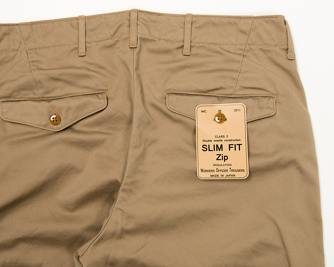 Officer Trousers, Slim, Type 2 Zip, Beige Chino |