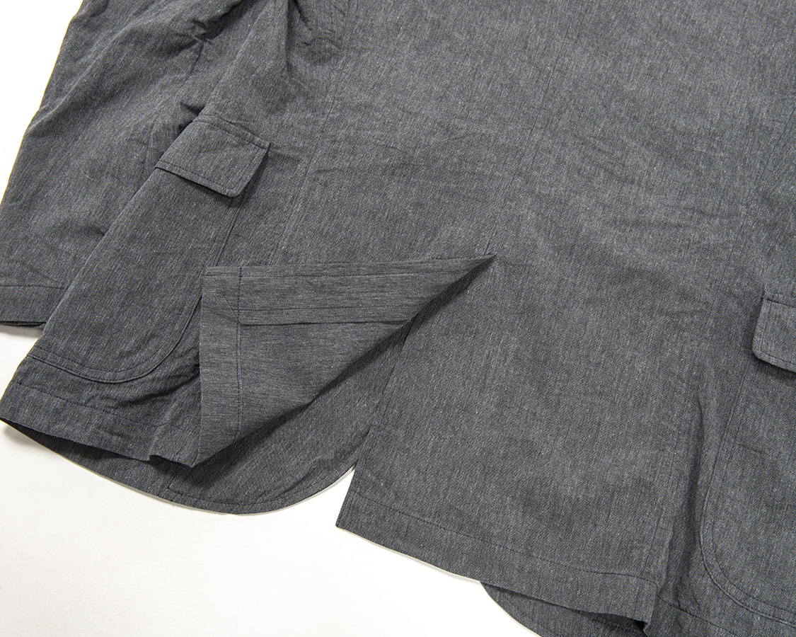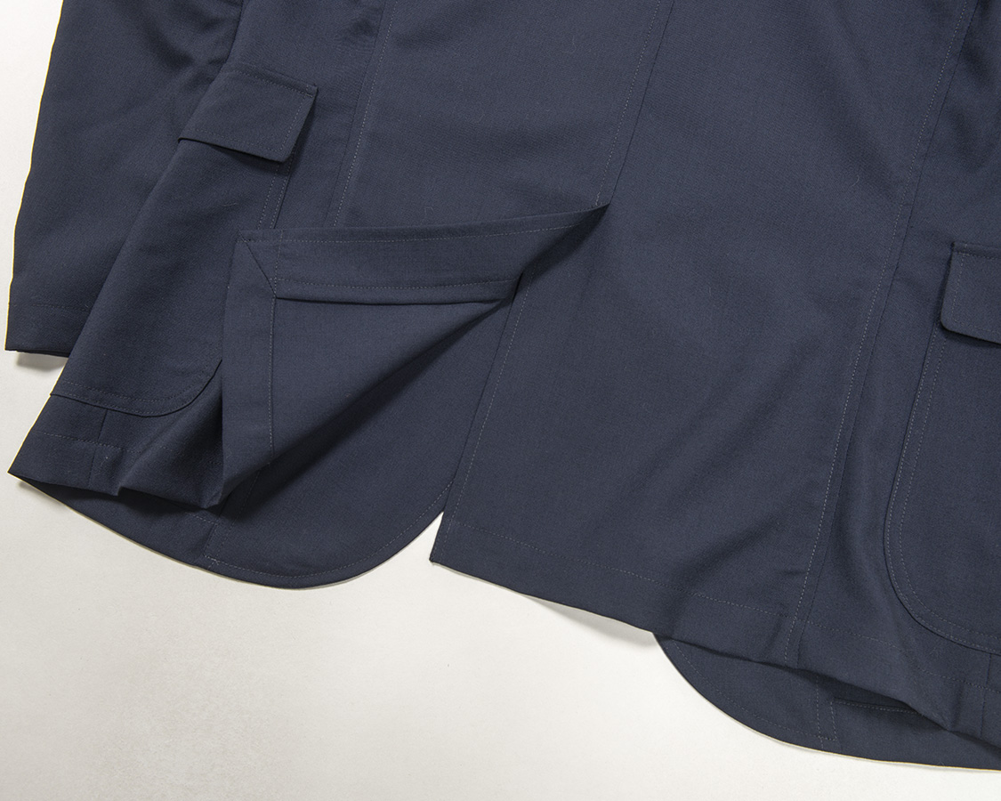 背中心のベント。しゃがんだ時には、ここがあいてつっぱらないといった、機能面もありますが、装飾的な意味合いもあります。クラシックなジャケットなので、ベント無しも考えましたが「ブレザー」的にはセンターベント欲しいなと残しました。(さすがに、フックベントにはしませんでしたが)