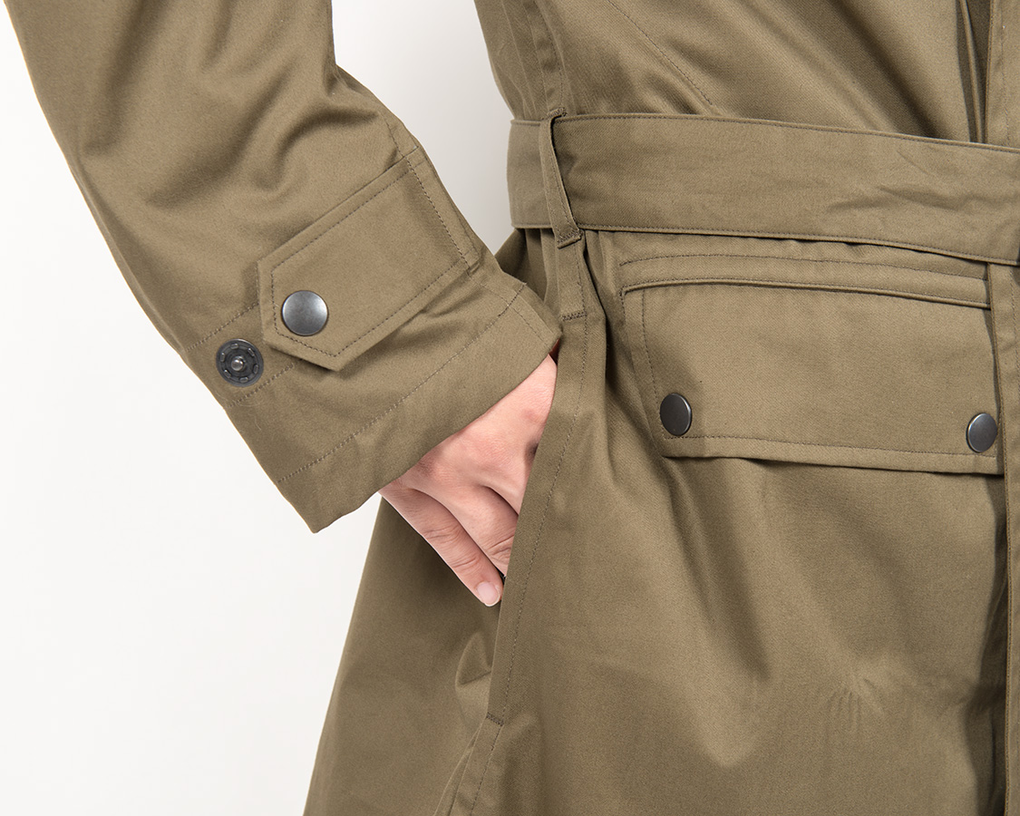 | Hooded Moto Coat, Khaki Ventile Twill |