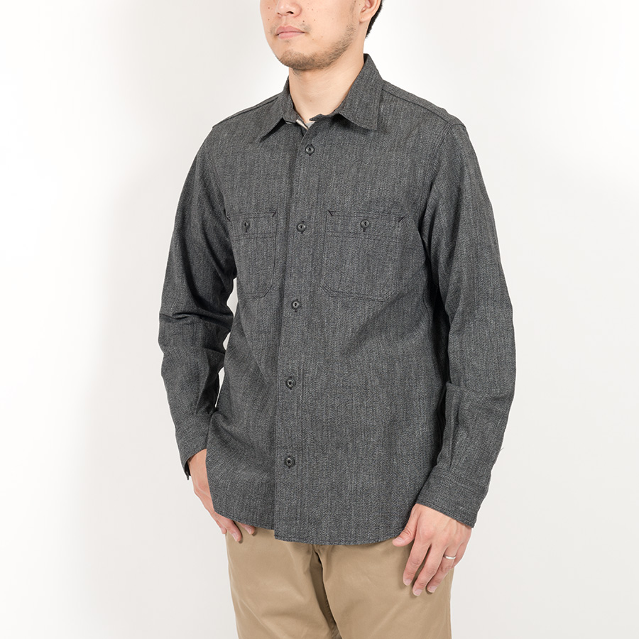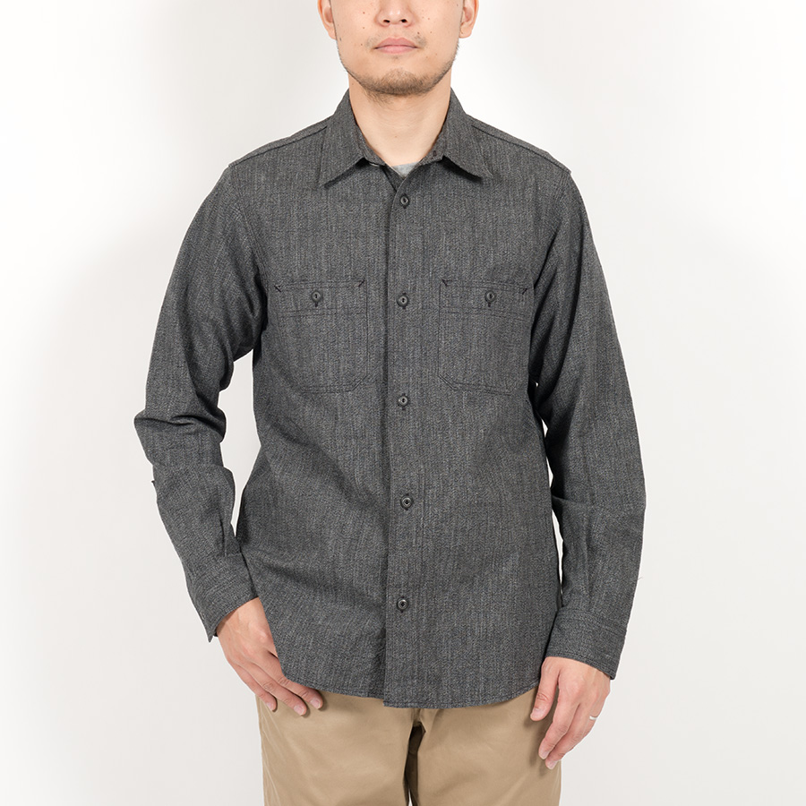 Metal Button Work Shirt, Black Covert |
