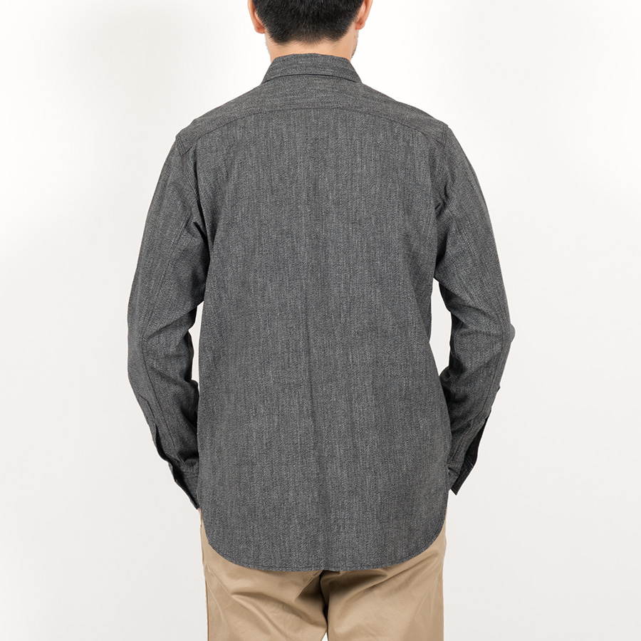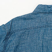 とても細かい目の綿糸によるステッチがリアルにビンテージ的な表情のワークシャツ。型紙もタイトにせず、本来のワークシャツらしさを目指しました。