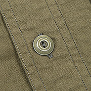 ポイントは別注したボタン。ボタンワークスさん謹製のメタルボタン。メタルボタン、以前から豪華ワークシャツには取り入れていましたが、塗装の質が良いので洗ってもそう簡単に色が剥げない。以前、他ボタンメーカーですぐはげるものを使っていて「さすがにこれは・・・」とご指摘もあり強度のある塗装にしているのですが
