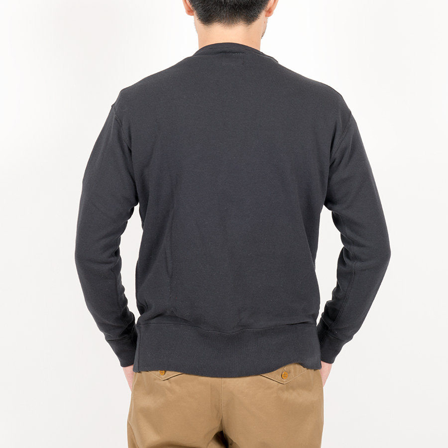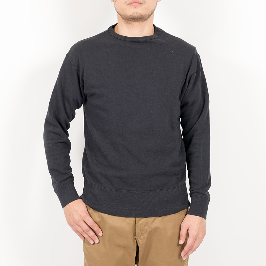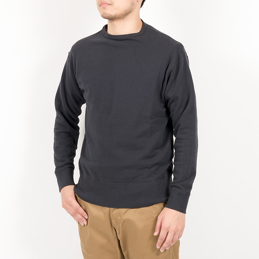 Tシャツの上に1枚で。寒い時はシャツの上に。Crew Sweat は前V も無いシンプルなデザイン。