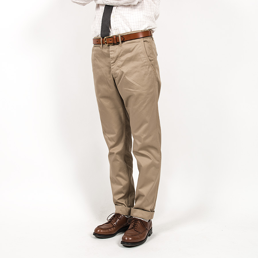 素材は10オンスクラスの高密度チノ。USMCKhakiはWORKERS別注品。