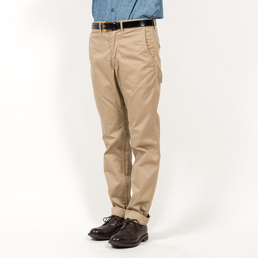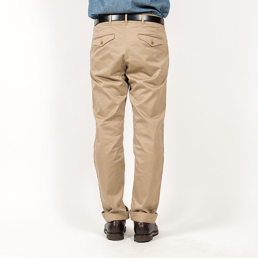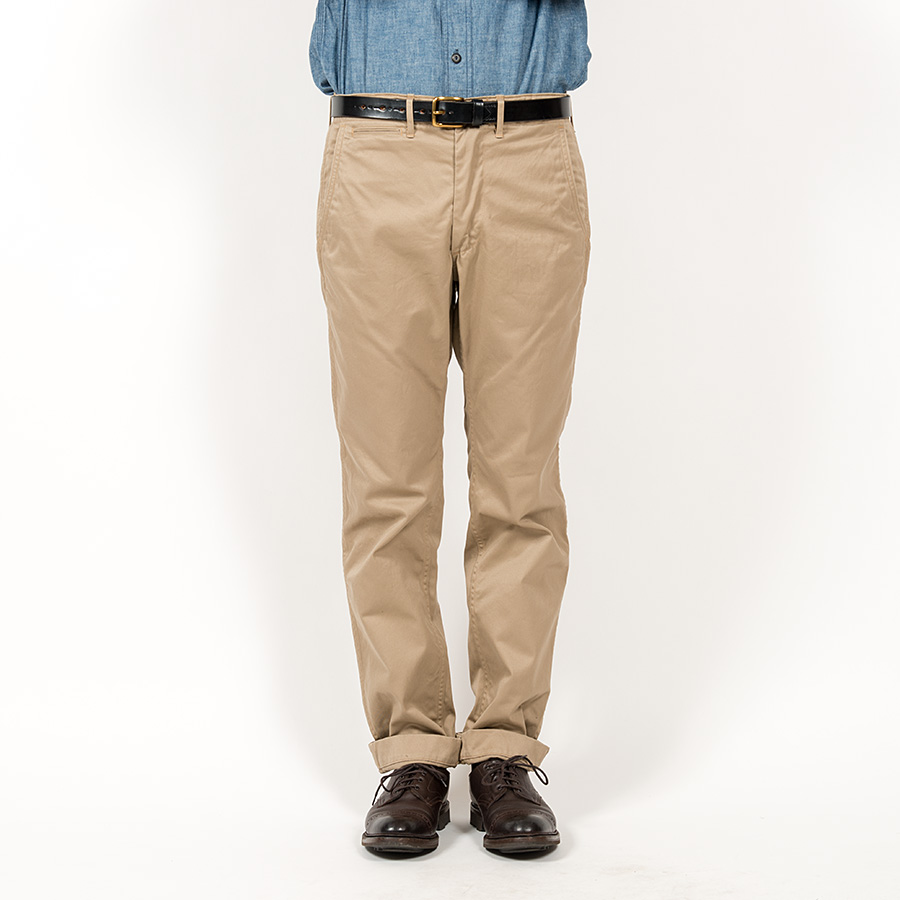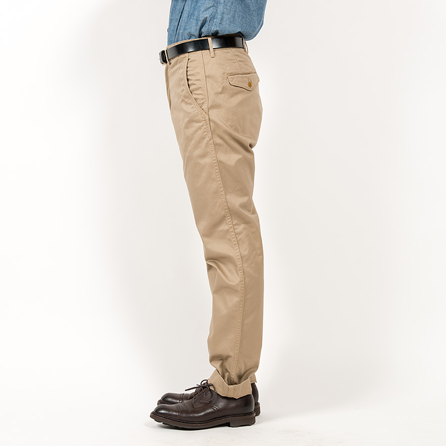 素材は10オンスクラスの高密度チノ。USMCKhakiはWORKERS別注品。