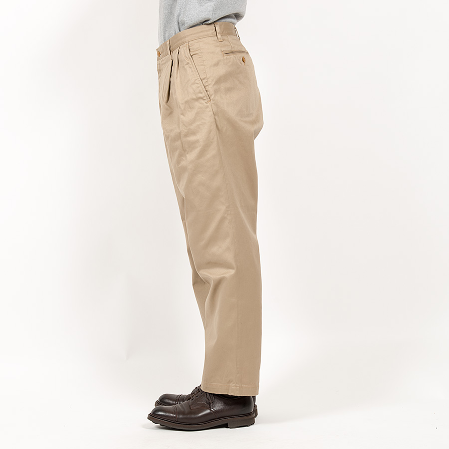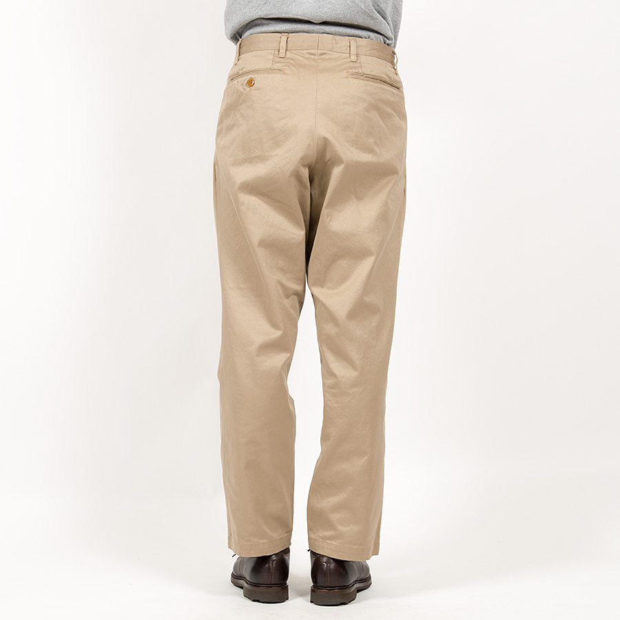 素材は10オンスクラスの高密度チノ。ベージュはUSMC Khakiよりもう少し白っぽい。いわゆる「ベージュ」で合わせるものを選ばない色。