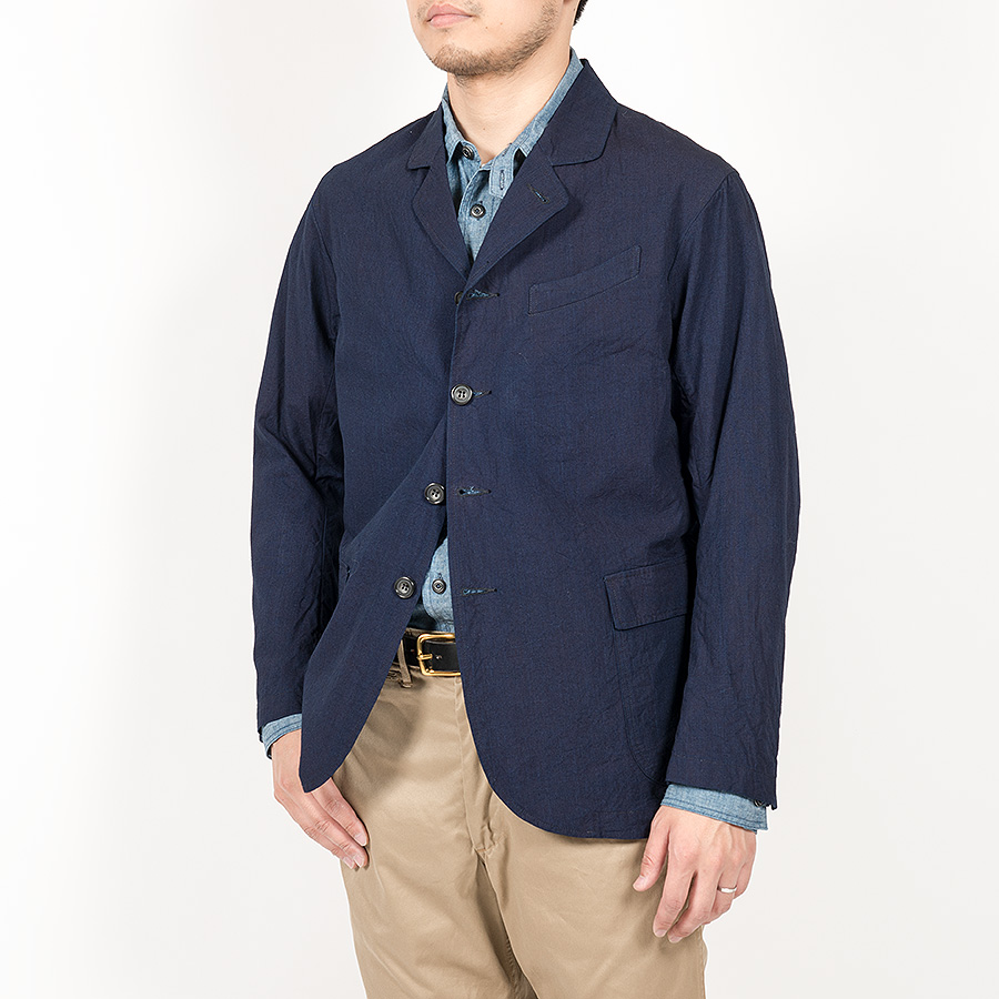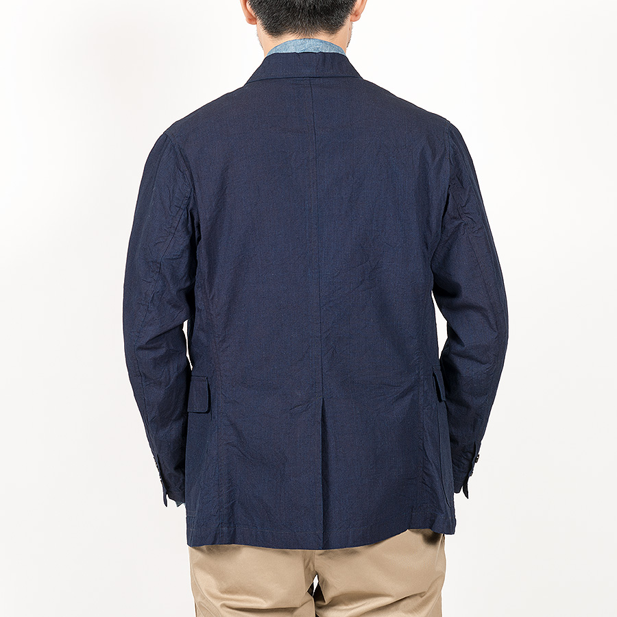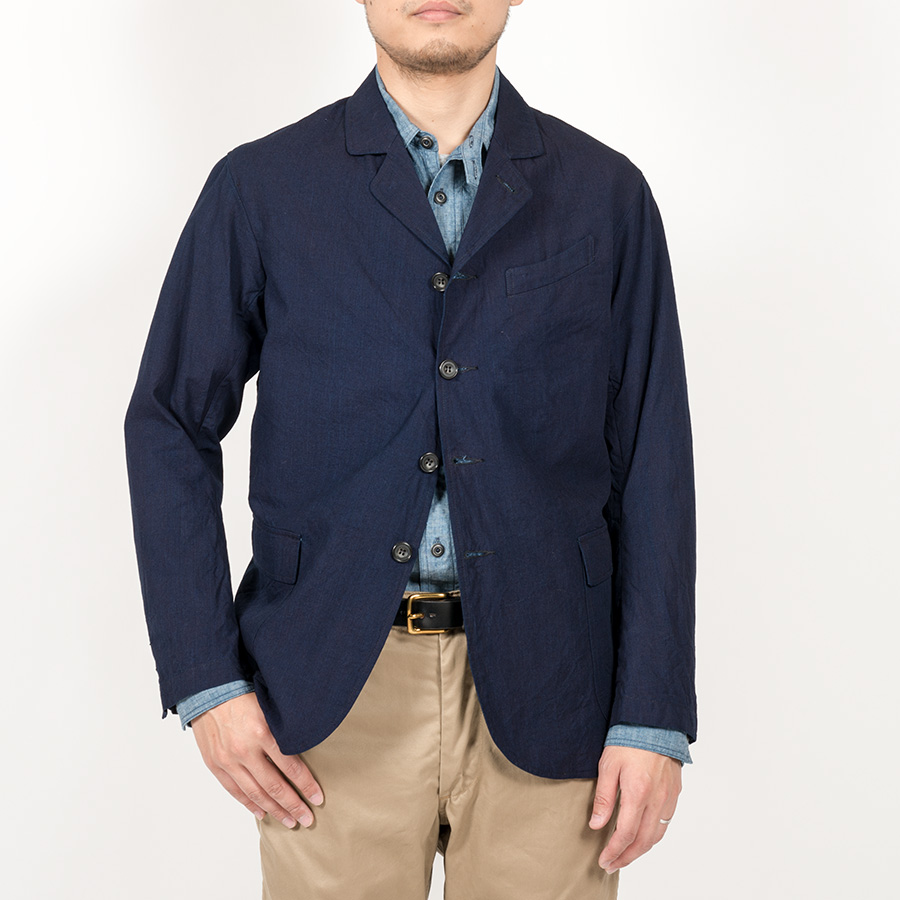 Jacket をデザインソースに胸ポケットはゆるくカーブした形状、腰ポケットはパッチ&フラップ。袖裏無しで、袖口に開き。