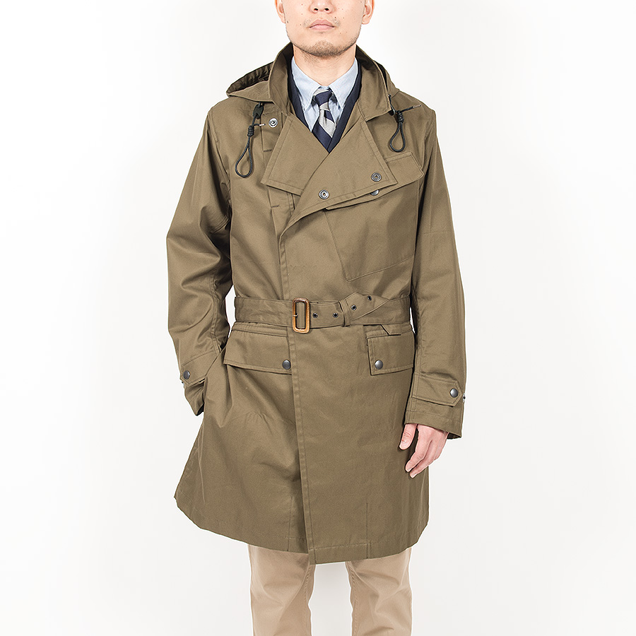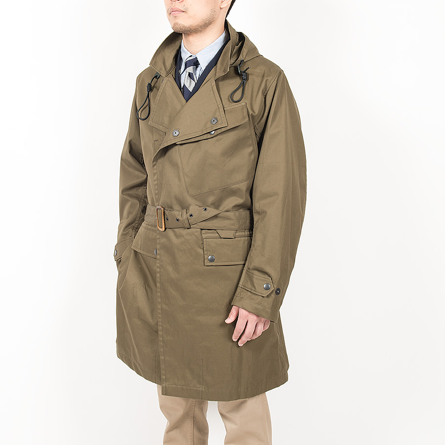 | Hooded Moto Coat, Khaki Ventile Twill |