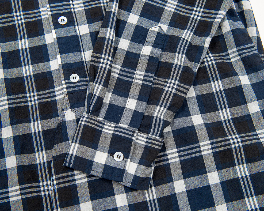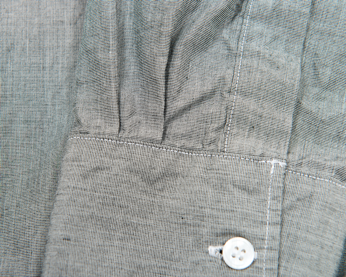 ビジネスシャツを見ると「良くぞ、この綺麗な作りでこの価格」とは思いますが、あちらはあちらで、生地や仕様、パターンを限定した上でああいうことが実現できているのです。WORKERSはそれとはまた違う、自由なシャツを作りたいと常々考えています。今回のバンドカラーはそういう意味で、かなり自由に作りました。今までの私だったら、もう少し制約の中というか、文法を守ったシャツを作ってきたのですが。