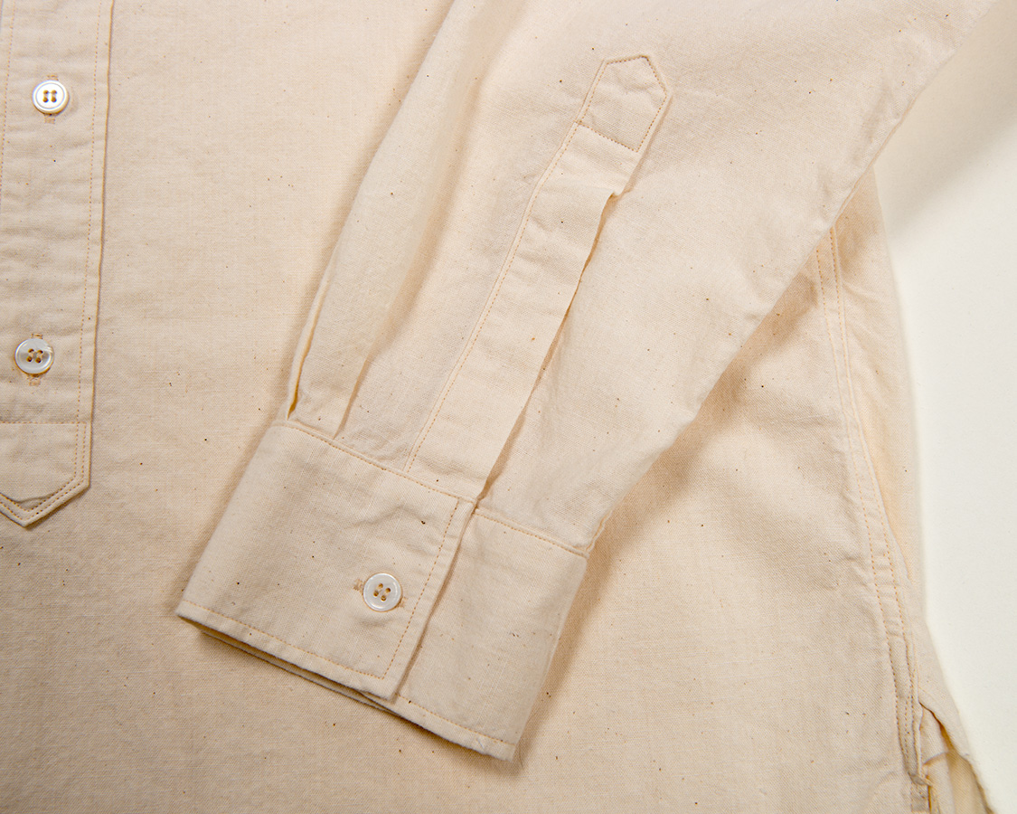 袖口はタック入り。参考にしたオリジナルはフレンチカフでしたが、そこは使い勝手を考えて、通常のカフスに変更しています。