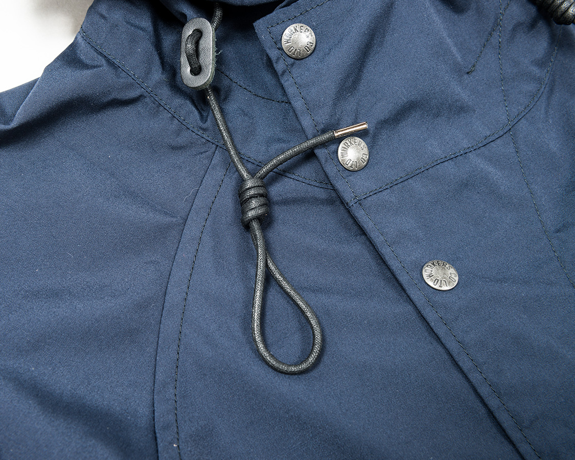 フード口絞りはワックスコード。このあたりはクラシックな雰囲気を重視。