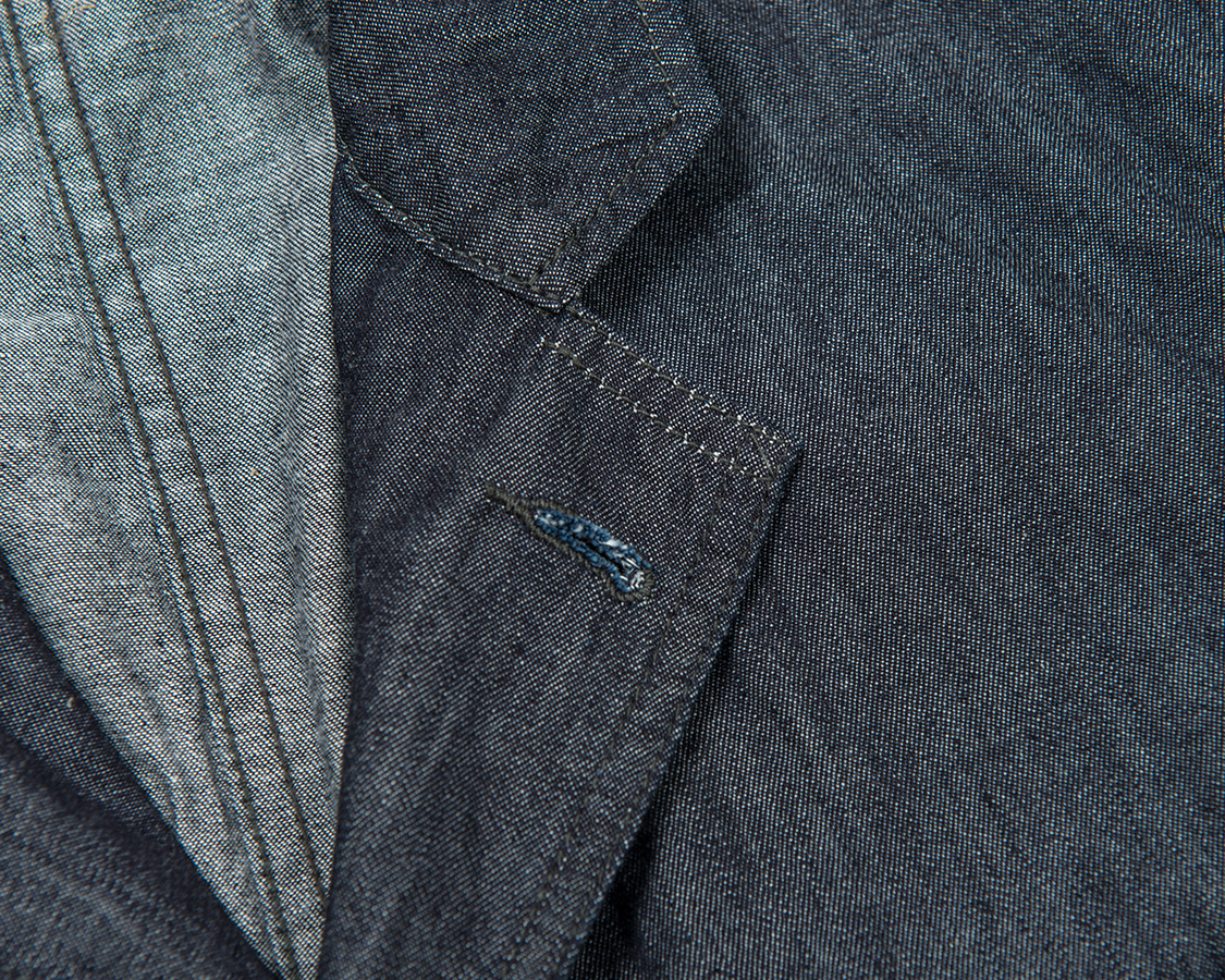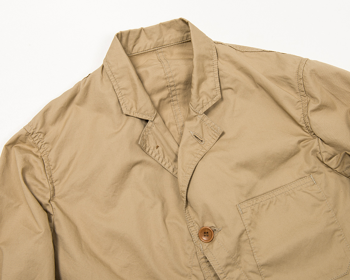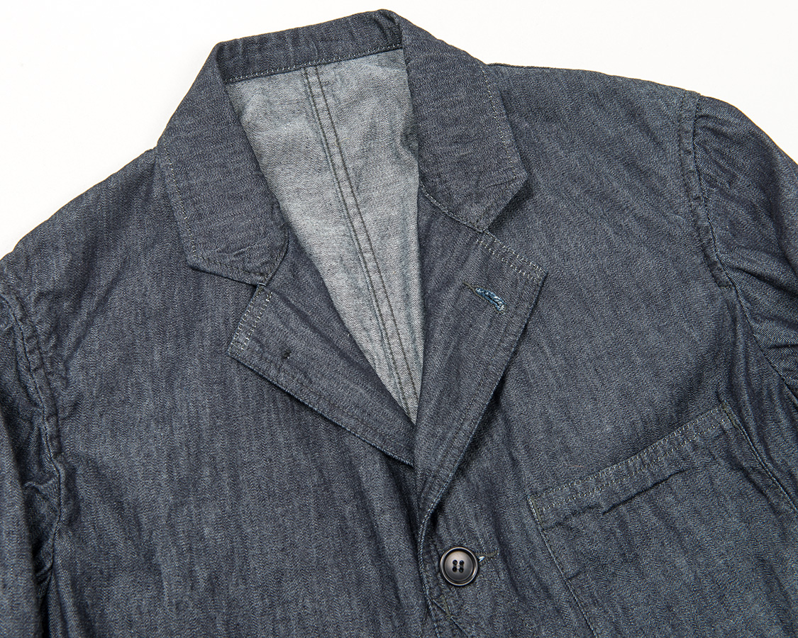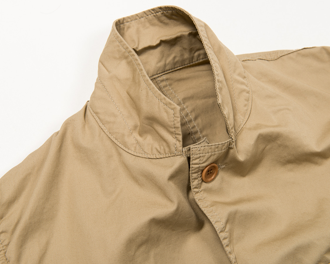 襟は挟み込みタイプのテーラーカラー。 実は最初に、チンストラップ付のカバーオール風襟でサンプルを作ってみたのですが似合わず。やはり、こちらのテーラー襟で落ち着きました。