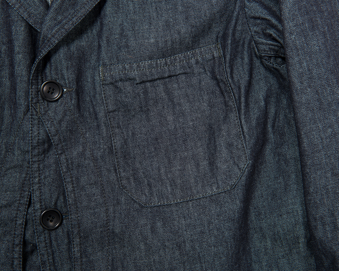 胸ポケットは容量を少しでも増やしたいのでステッチを1本に。単純にステッチデザインの統一性から行くとダブルなのですが、ここは単なる見た目よりも機能を選びました。