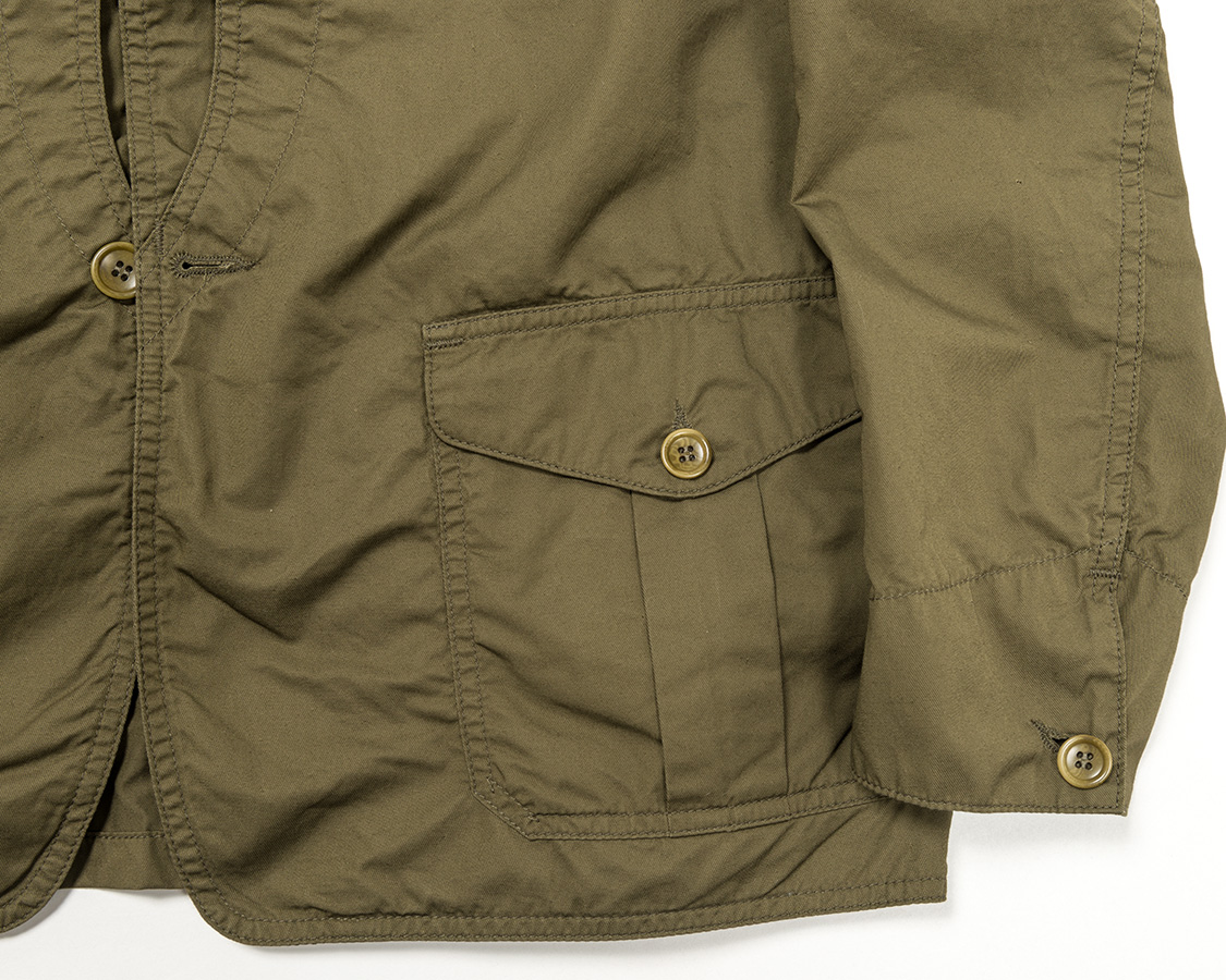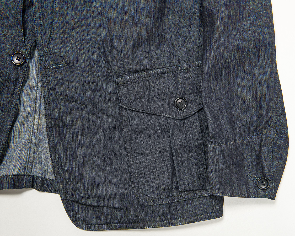 腰ポケットはフラップ+マチ付ポケット。袖口はいわゆるカバーオールなどと同じ裏見返し。ボタンをあければ少し袖がまくれます。