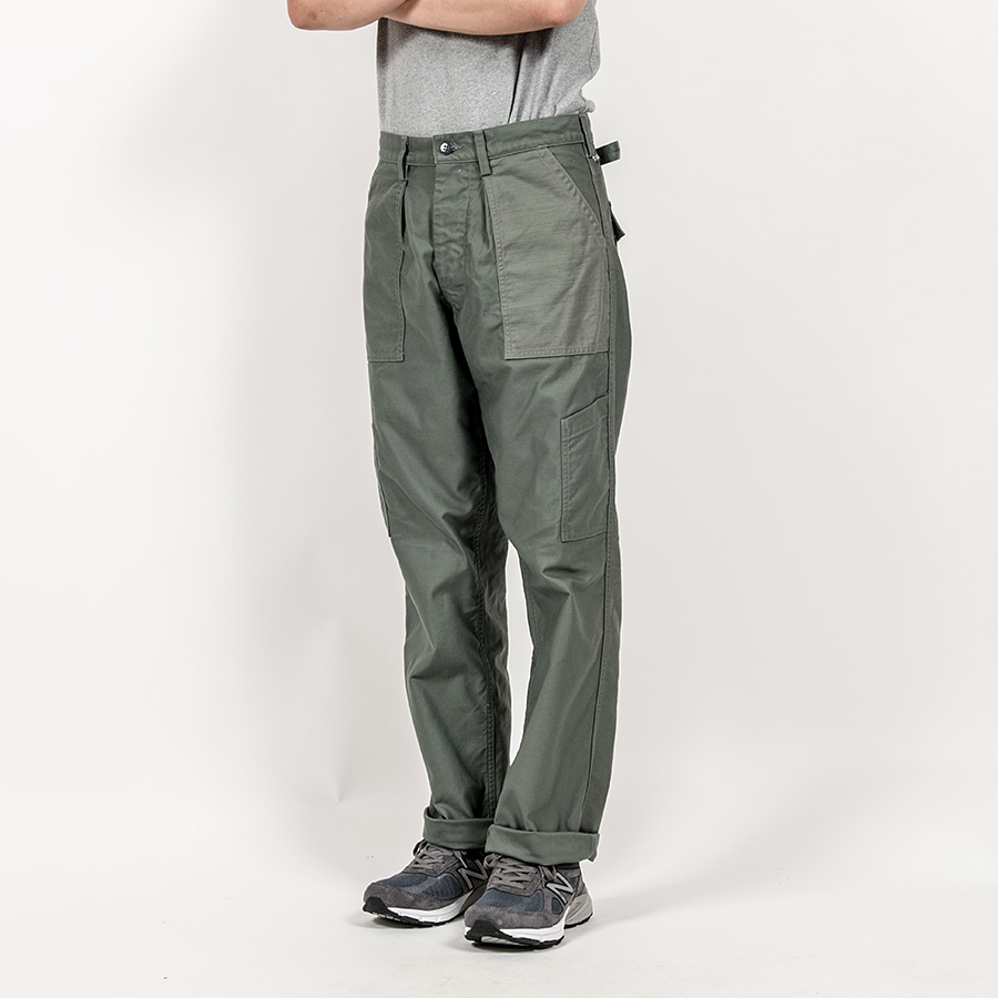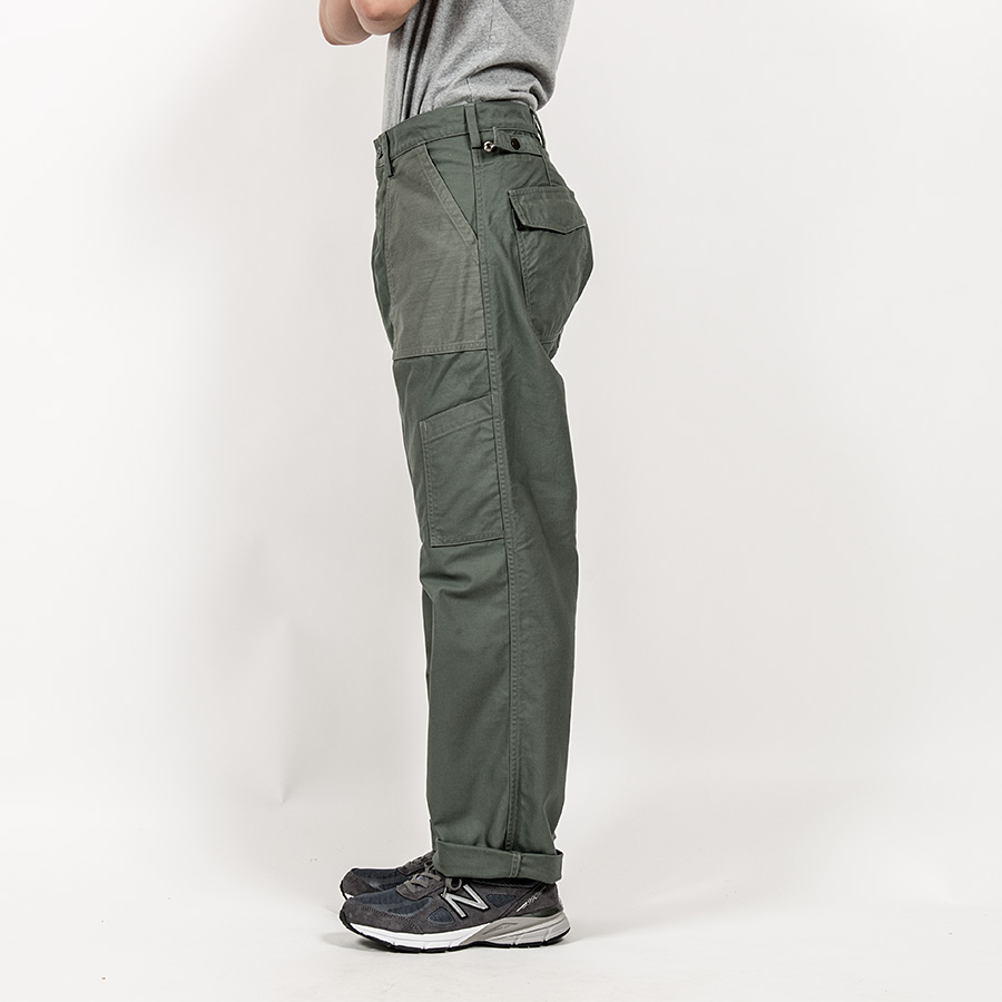 ました。今季はFatigue Shirtで登場する、おなじみの緑が強いODとは違う色味。2-Toneは超マニアックに、色は同じセージグリーンでバックサテンの織が違います。身頃が目が細かいM-51 系、ポケットが糸が太い・目が粗い、今までのベーカーやFatigue Shirtに使ってきた物。