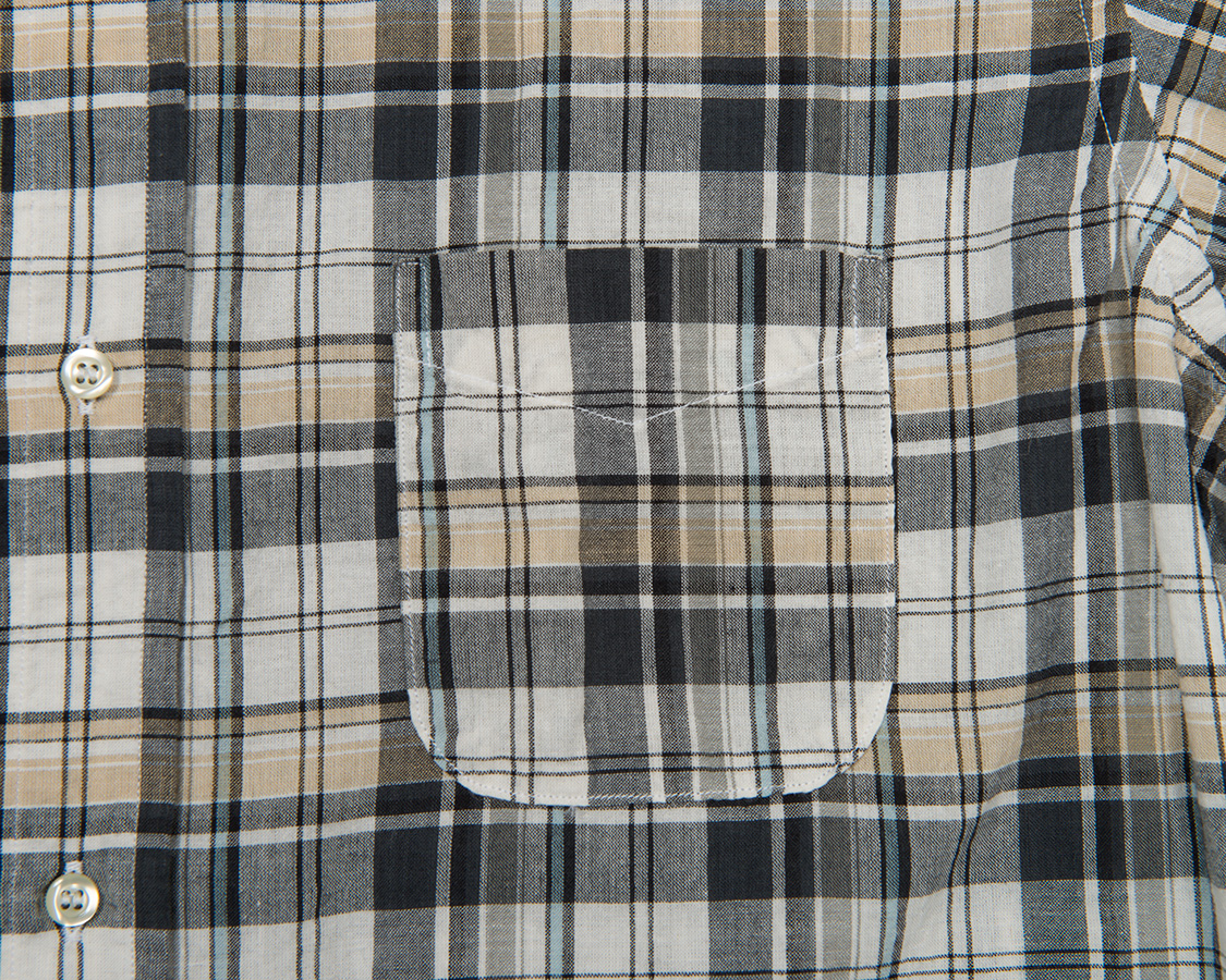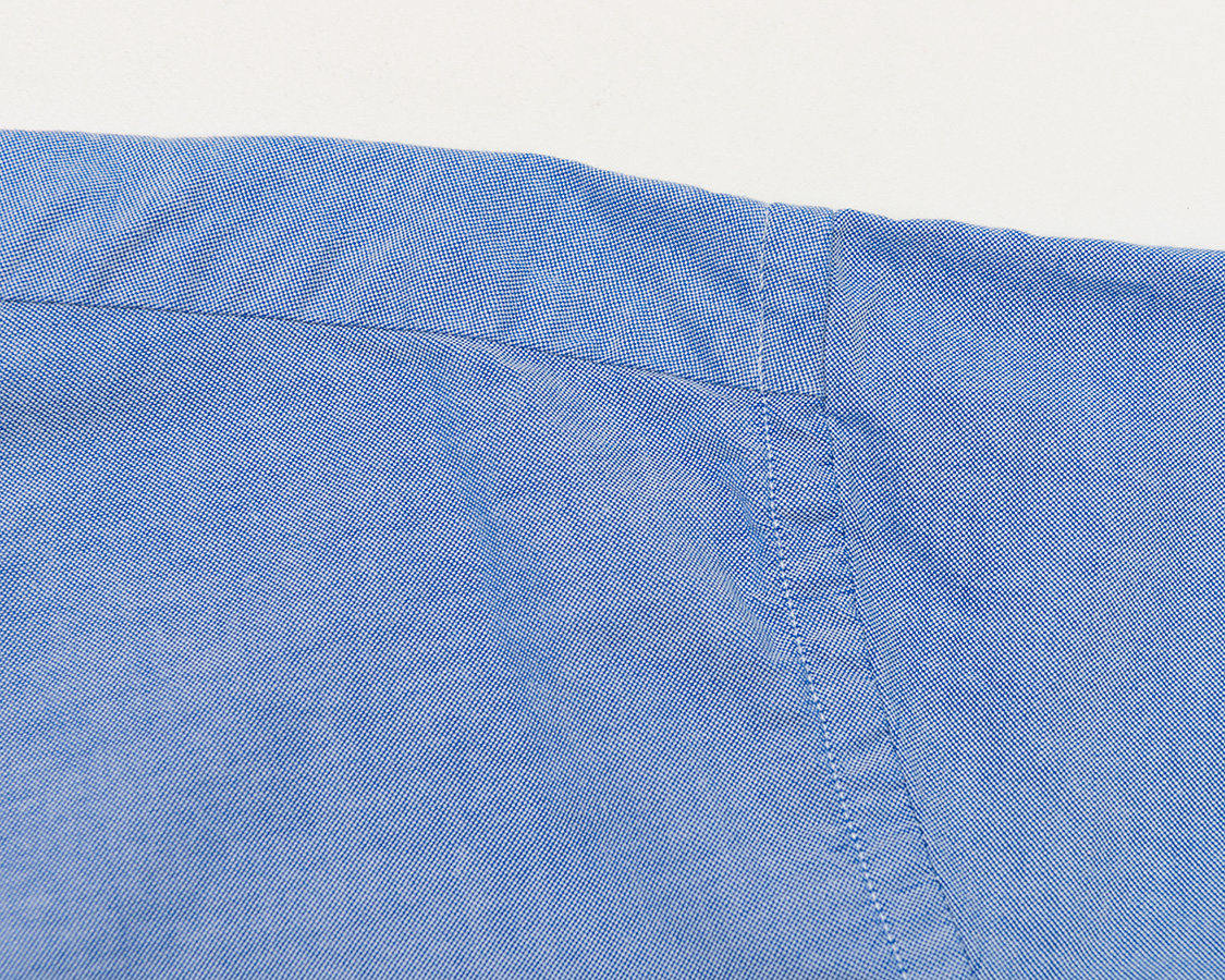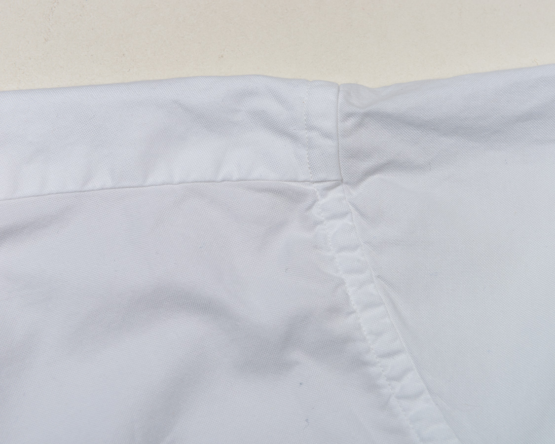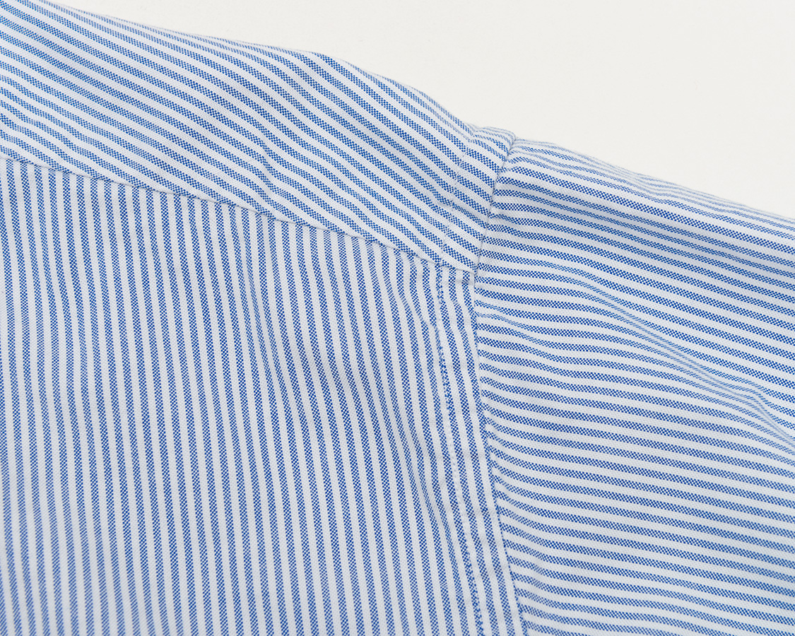肩はおなじみ、ステッチなしのヨーク。袖ぐりは折伏せ縫い。裏から見てもロック目が見えない、きれいな始末。