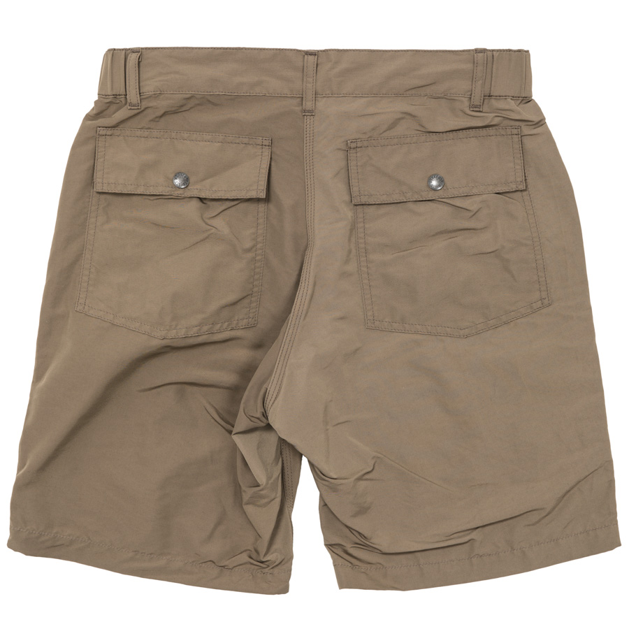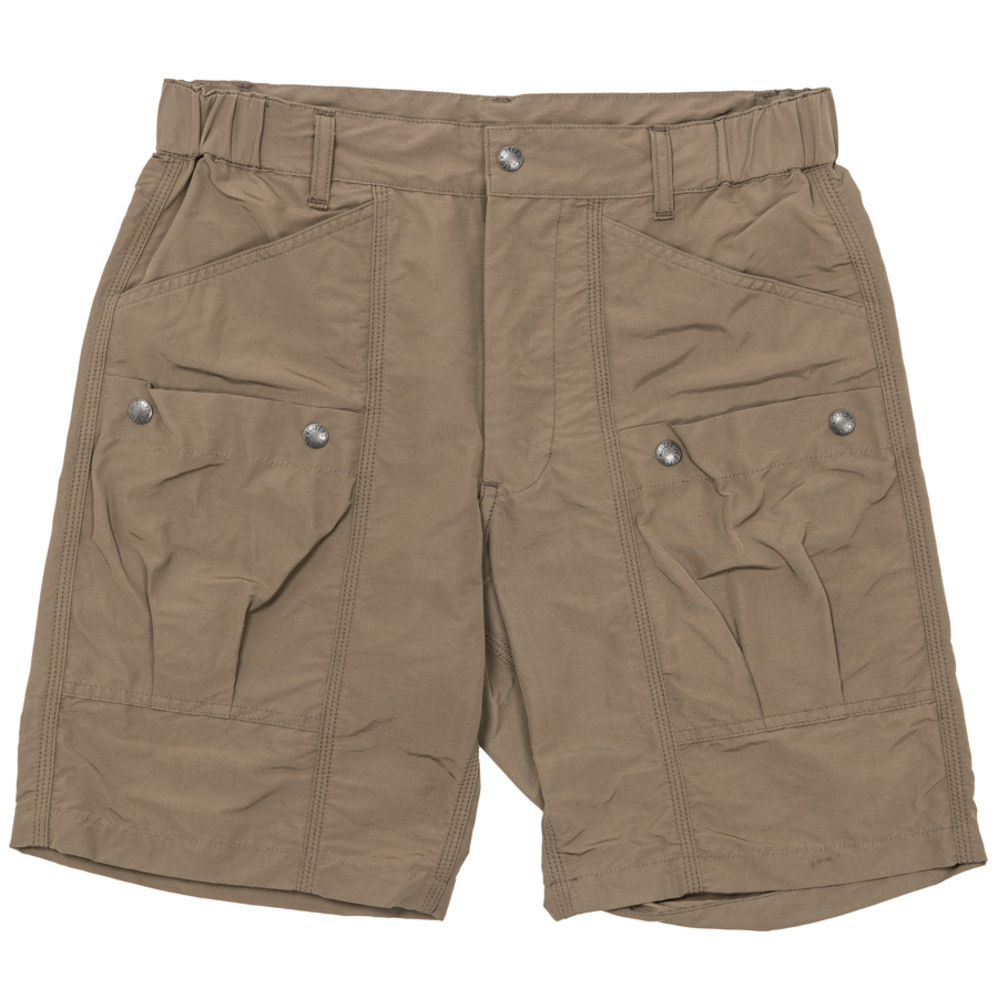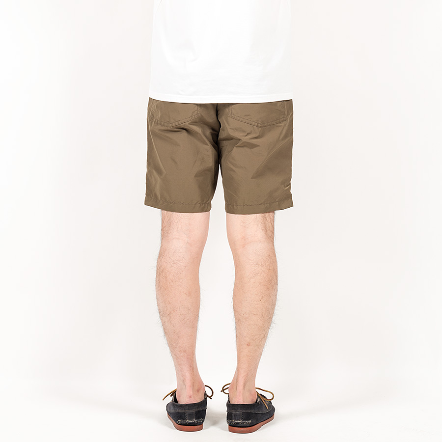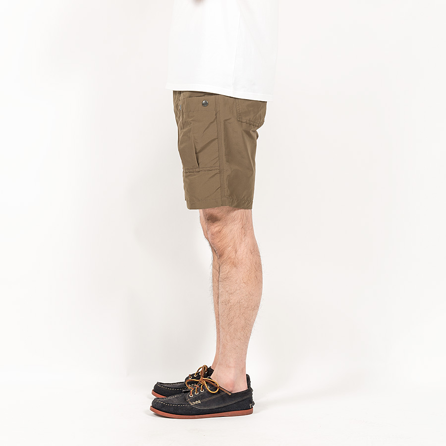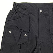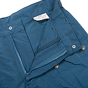 ファスナーはビスロン、すべりが良く、1960 年代のアウトドアウェアでも多用されたので60/40 クロスに良く似合います。 60/40 クロス、やはりポイントは撥水性+ 速乾性。さらっとした肌触りで、洗ってもすぐ乾く。でも化学繊維100では 無いので、綿独特の汗を吸う機能は残っている。これが、夏に穿いて快適な理由です。
