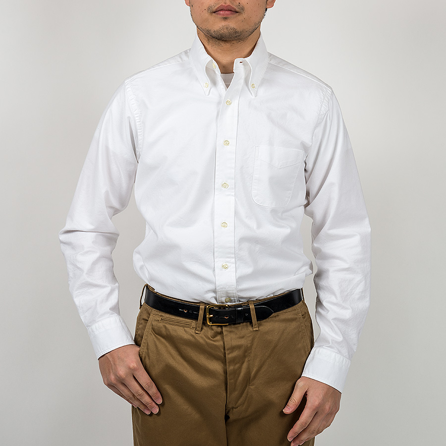 がっちりアイロン、裾を入れてネクタイを締め、トラッドなBDとして。逆に裾を出してボタンも前を開けてゆったりと。そんな風に、綺麗にも、崩しても着られるのがBDシャツの良い所です。
