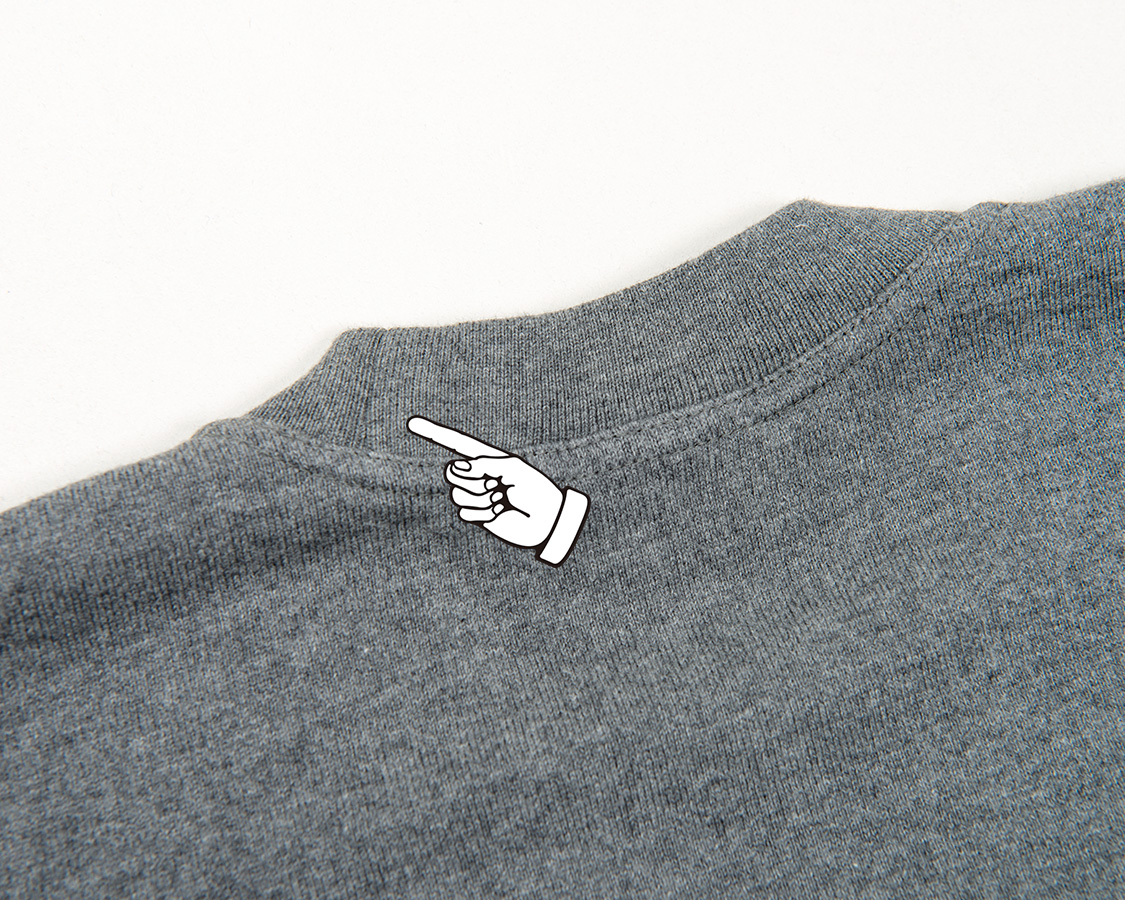 首リブはセーターを編む横編み機(Flat Knitting Machine)、身頃はTシャツを編む丸編み機(Circular Knitting Machine)で編んで合体させたFC Knit。