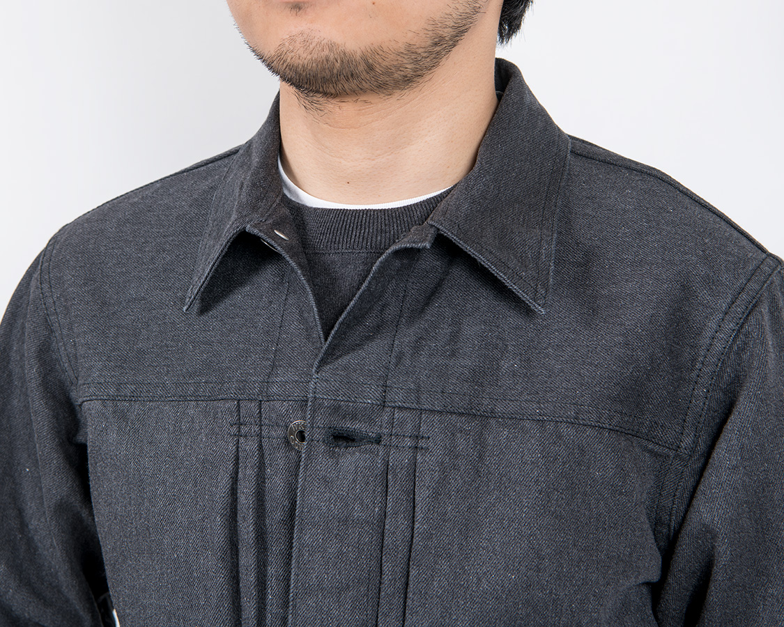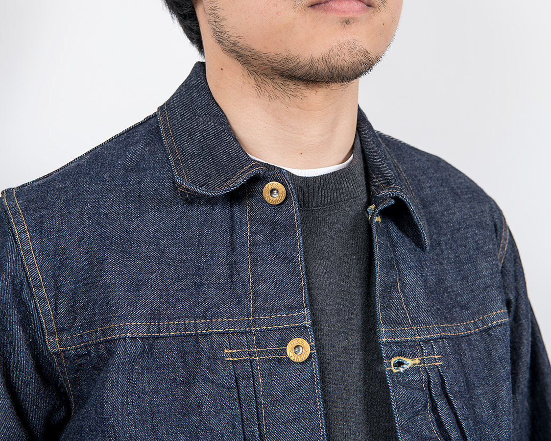 今までWORKERSで作ってきたデニムジャケットはあえて襟を小さくしたりバランスを現代的に補正してきました。 今回のCowboy Jacketは着丈は、現代的に修正していますが、こと襟に関しては古い物に近い。大き目の型紙をひきました。