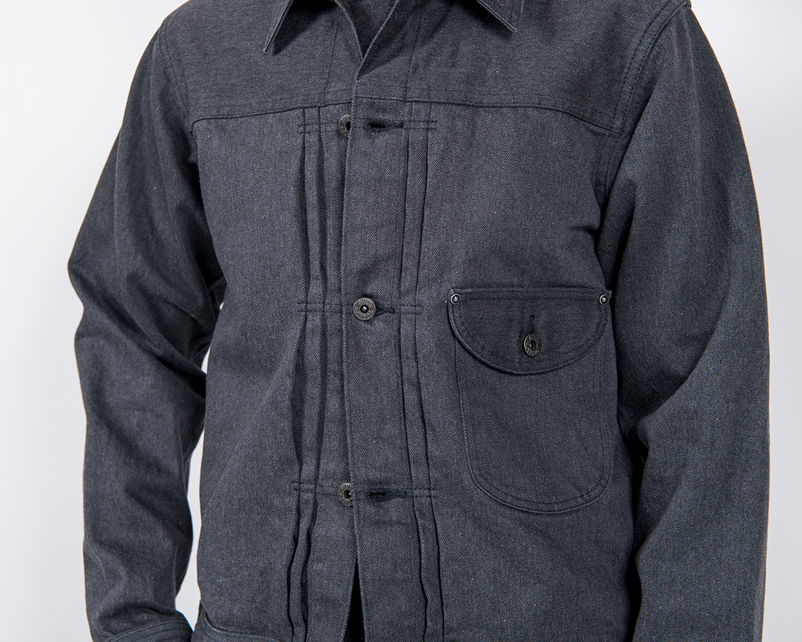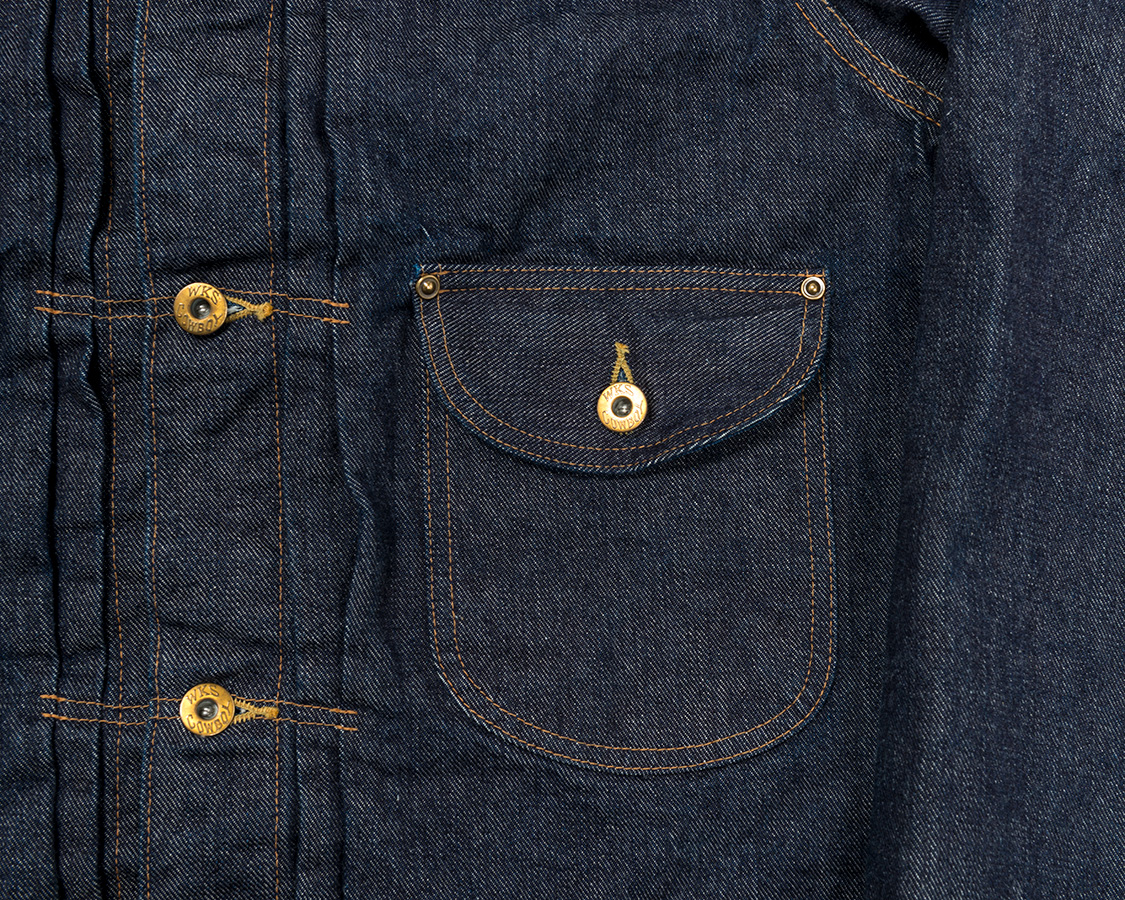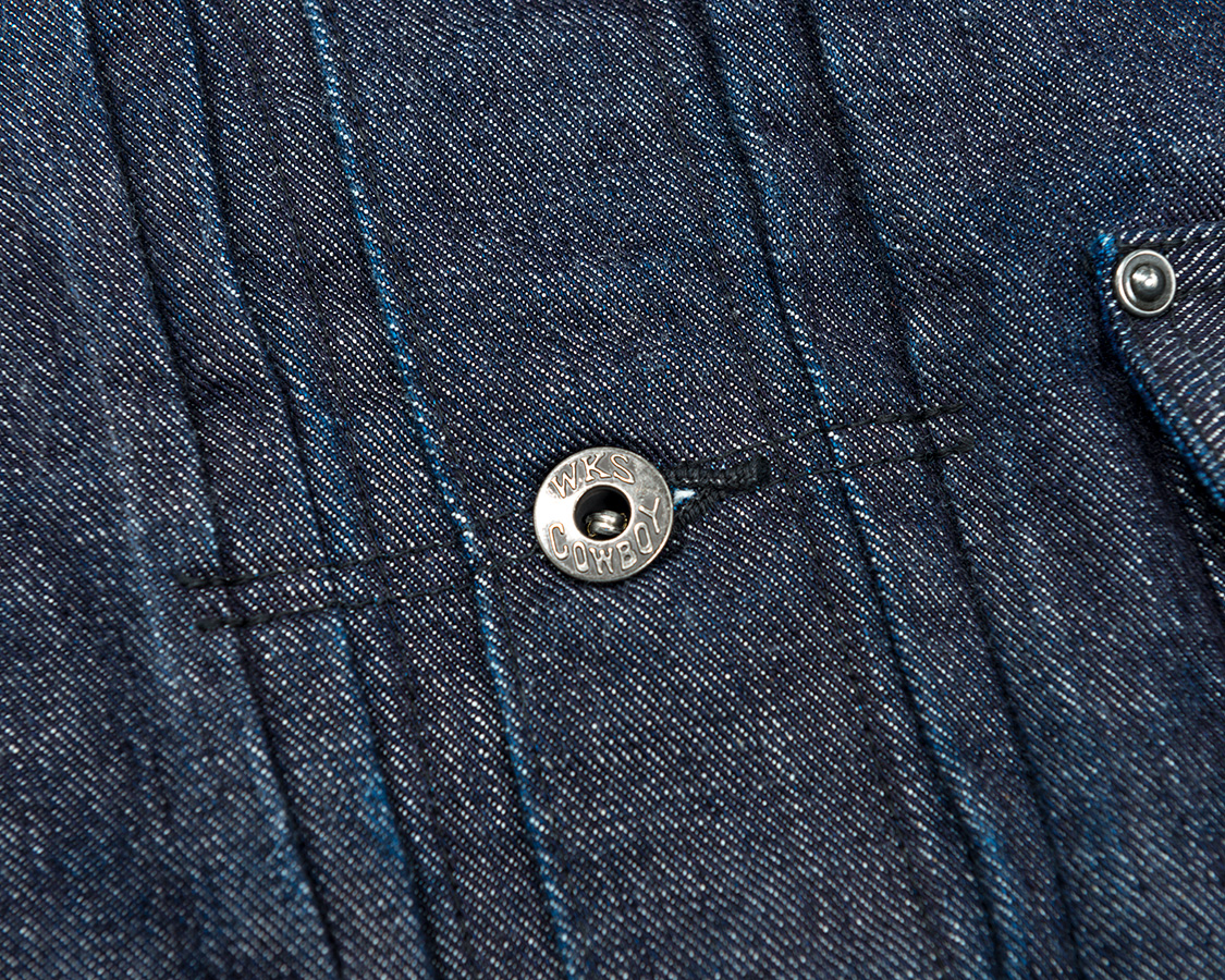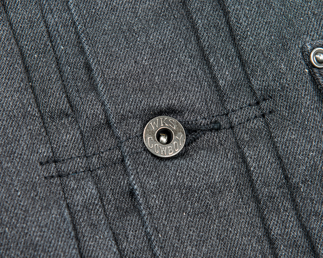 ボタンももちろん、それらしい物を。二本爪タイプのドーナツボタン。ブラックステッチ、コットンサージに合わせて黒メッキも作りました。表面が若干はげたメッキがお気に入りです。