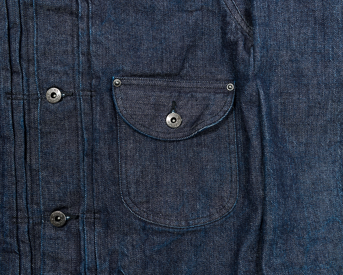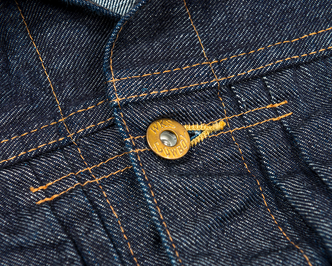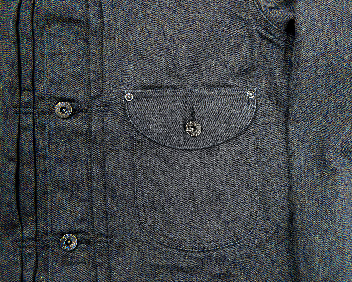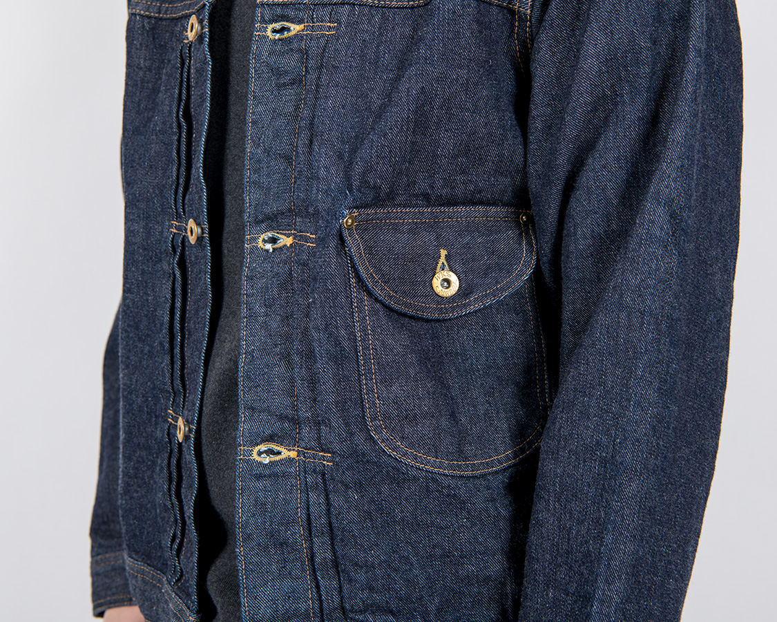 ボタンももちろん、それらしい物を。二本爪タイプのドーナツボタン。ブラックステッチ、コットンサージに合わせて黒メッキも作りました。表面が若干はげたメッキがお気に入りです。