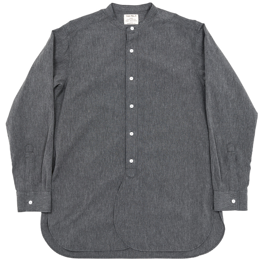 ビンテージのおそらく、イギリスミリタリー物と思われるバンドカラーシャツから着想を得て作りました。
