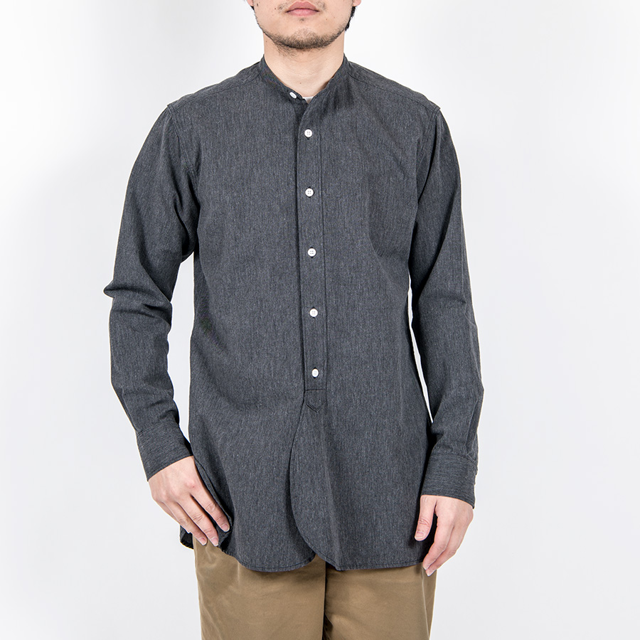 Band Collar Shirt Black Chambray |