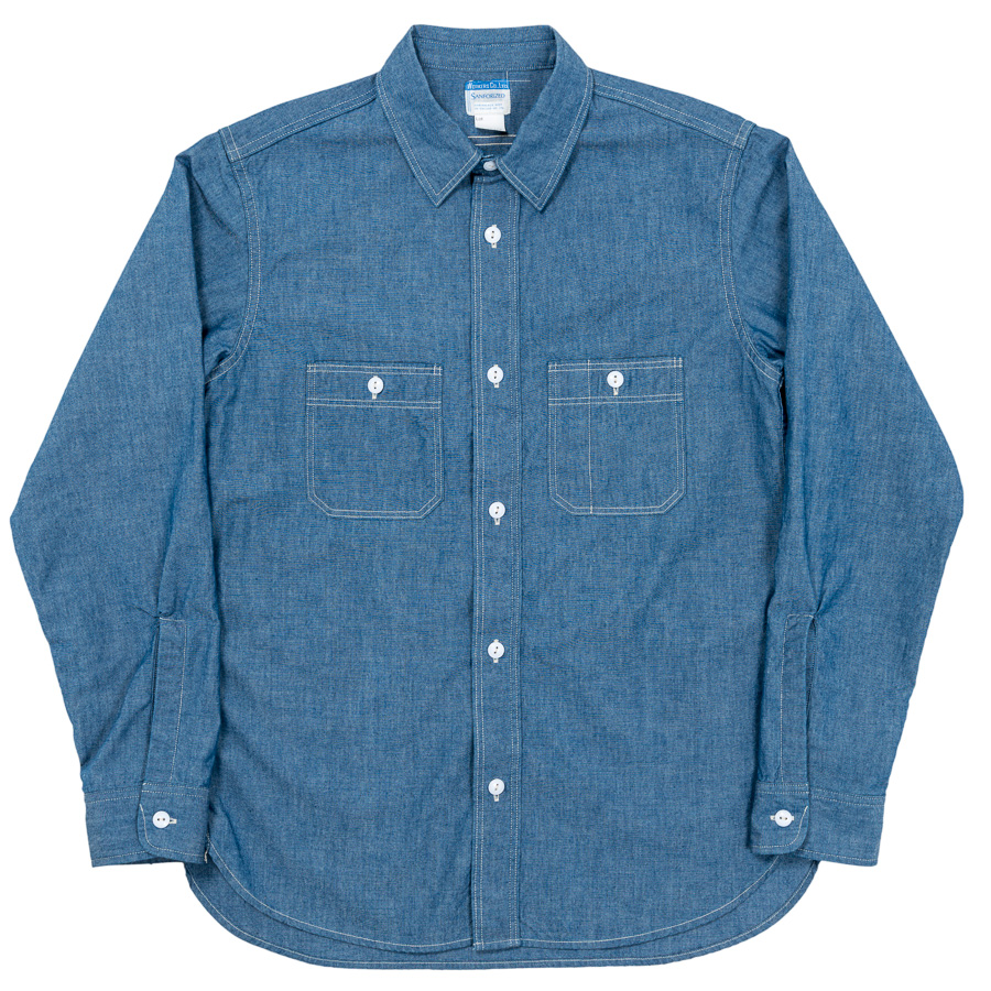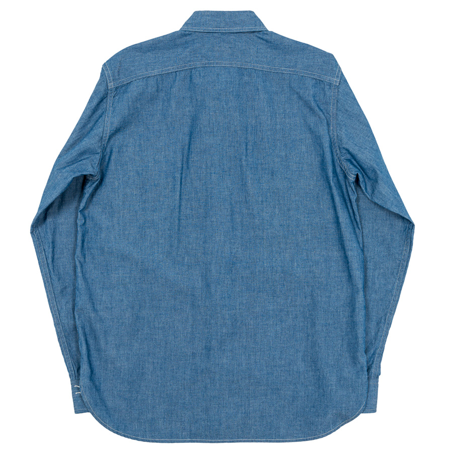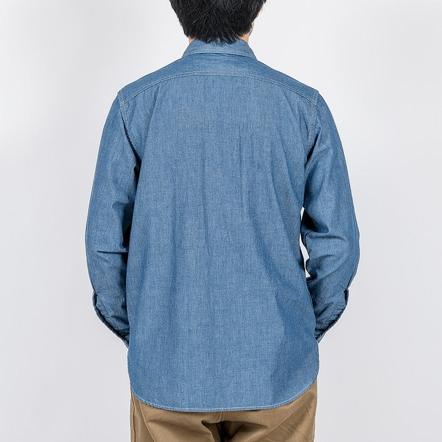 5 オンスブルーシャンブレーはインディゴ染ならではの経年変化が見どころ。着て、洗ってを繰り返し、気づいたときには襟の裏と表がものすごい色の差になっています。
