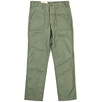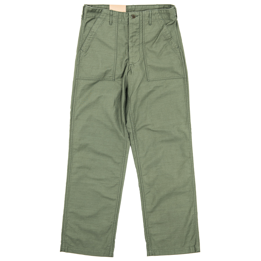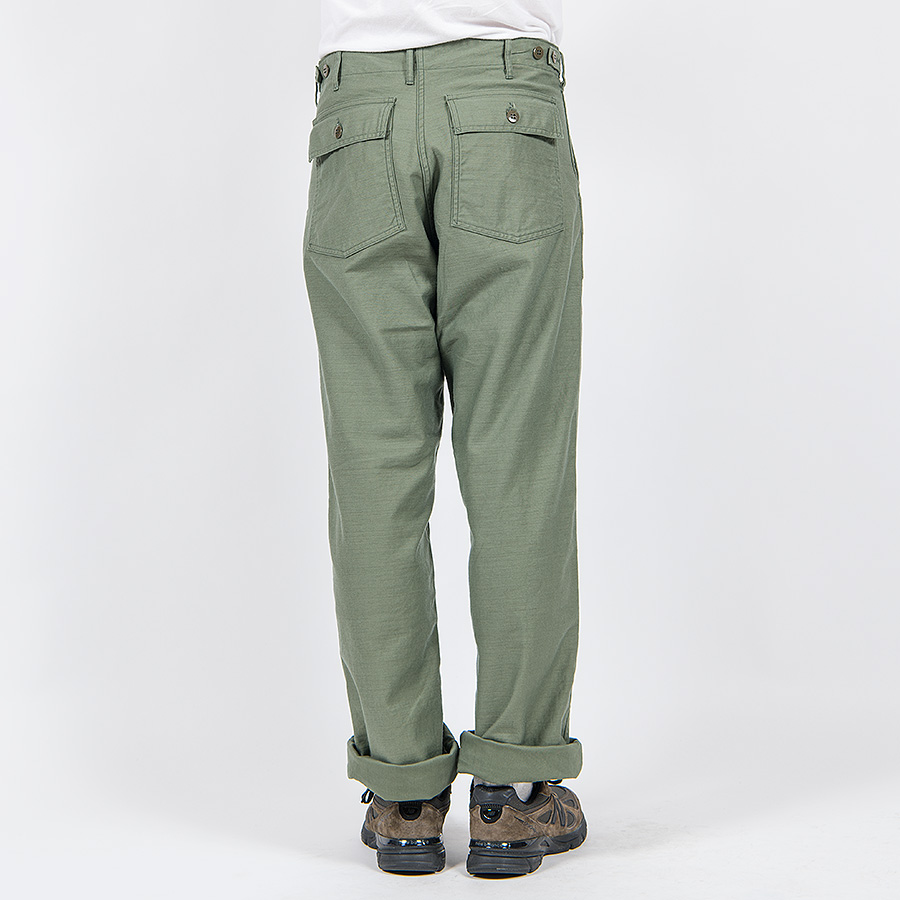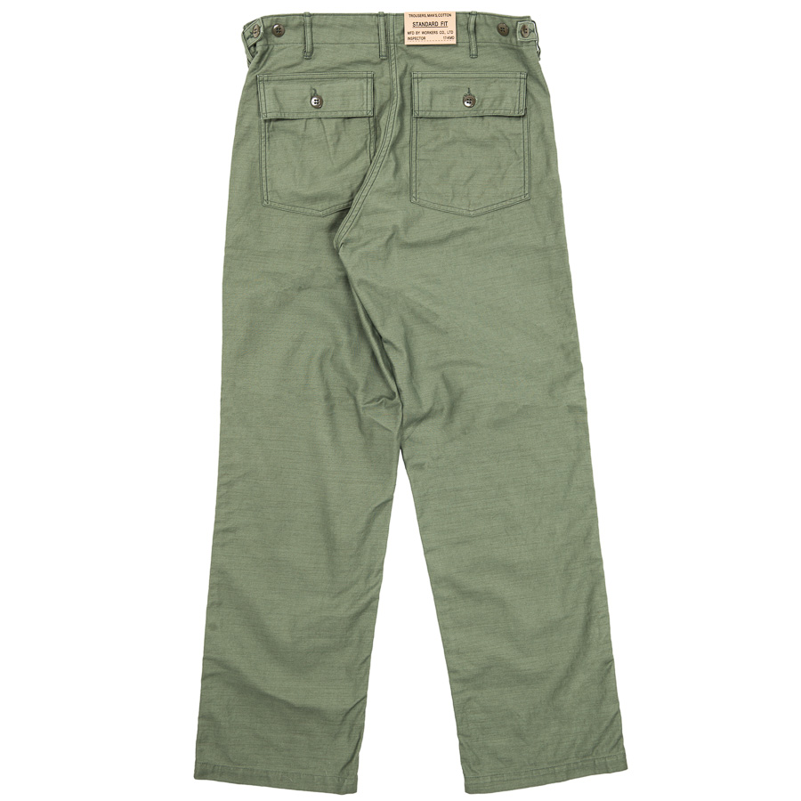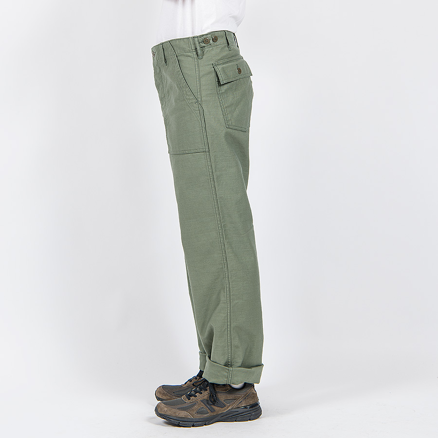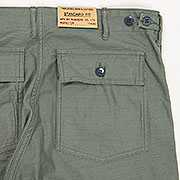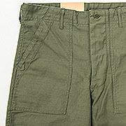 バックサテンが二種類。OD、Light OD はMIL-C-10296J、いわゆるベーカーパンツの生地を再現。ヨコ糸が太く、筋張っ