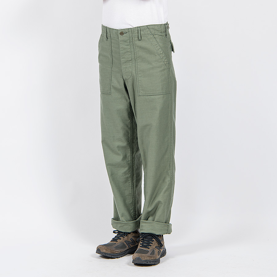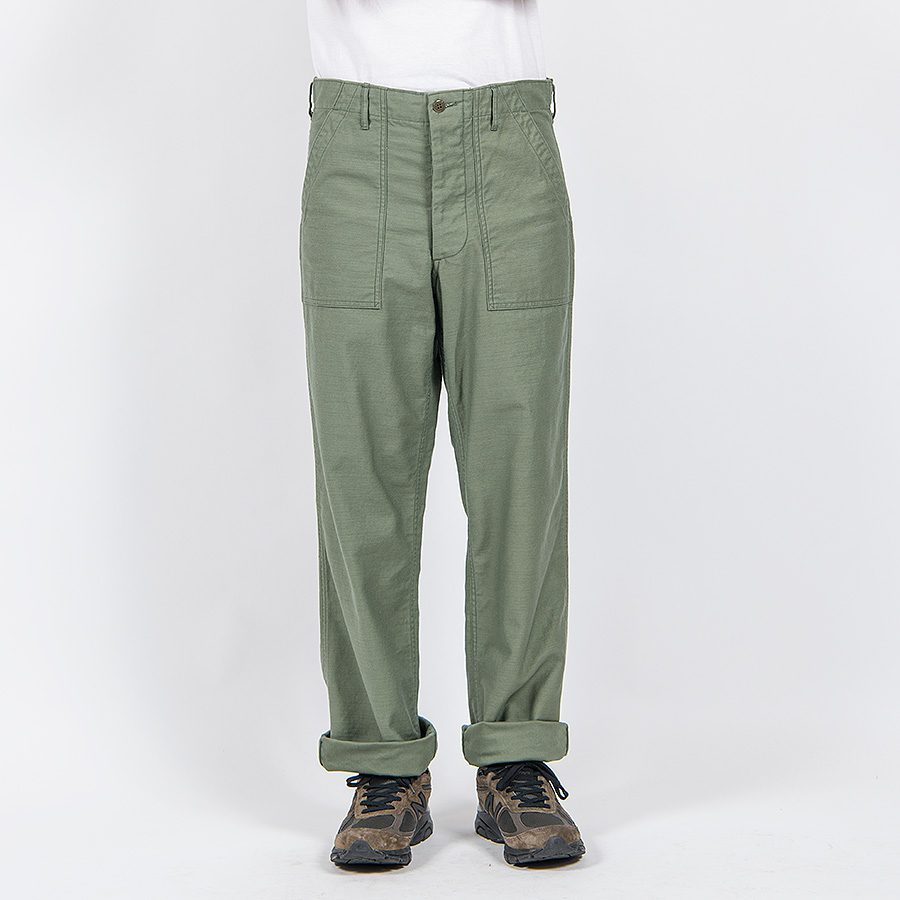コーディネートは上下オリーブにならなければ、上に何色を持ってきても大丈夫。私自身は、ミリタリーのトラウザーズ