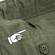 モデルはWORKERSのジーンズ・チノで32程度。実寸で83-4程度のウェスト。今回のベーカーはSサイズをボタンで絞ってはいています。 |