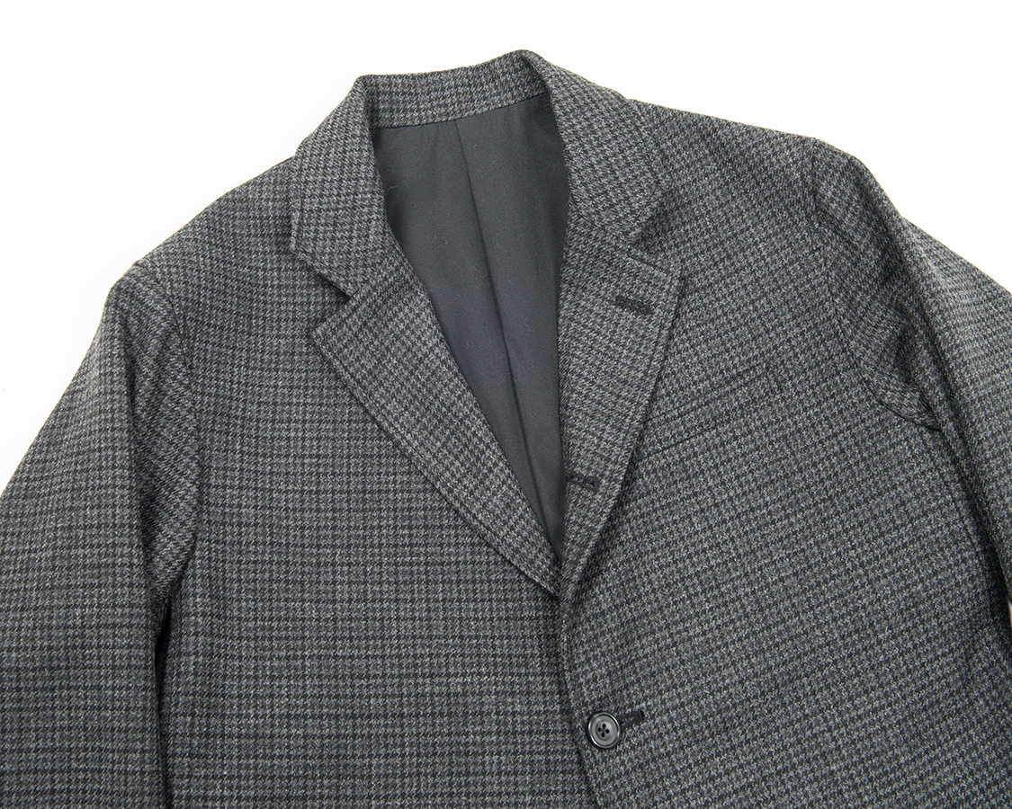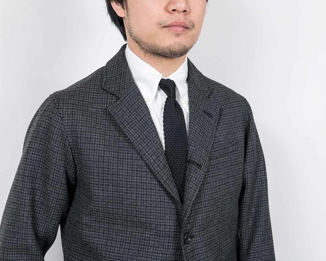 WORKERSの三つボタン・段帰りモデル、Maple Leaf Jacket。ガンクラブチェックとダブルクロスブラック、前者はかなりクラシックかつアメリカントラッドなのにちょっとブリティッシュを感じるのは生地の雰囲気から。後者はひたすら分厚いコットン生地。真っ黒、ブルースブラザーズ(BB)がイメージですが、BBは薄いおそらくトロピカルのような生地なのに対しこちらはガチガチの厚地です。