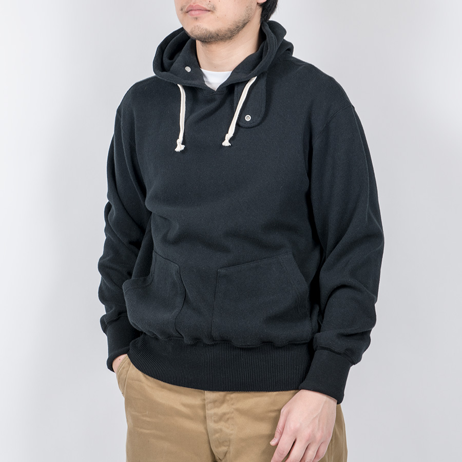 パーカーは裾・袖口リブは横編み、フードは身頃と共生地で。スウェットより少しシックな雰囲気の生地でパーカーを。 デニムジャケットを合わせたり、脱着フードをとったN-1 Puff Jacket に合わせればお気楽コーディネートに。