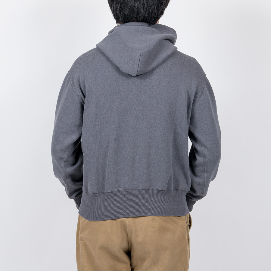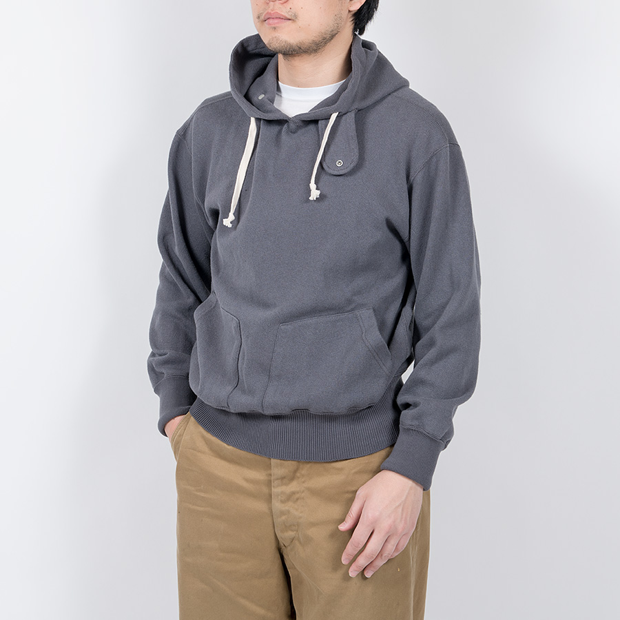 パーカーは裾・袖口リブは横編み、フードは身頃と共生地で。スウェットより少しシックな雰囲気の生地でパーカーを。 デニムジャケットを合わせたり、脱着フードをとったN-1 Puff Jacket に合わせればお気楽コーディネートに。