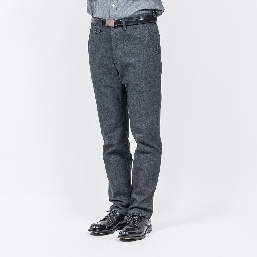 シルエットはWorkers Officer Trosuersをベースに、もう少し裾細身に。