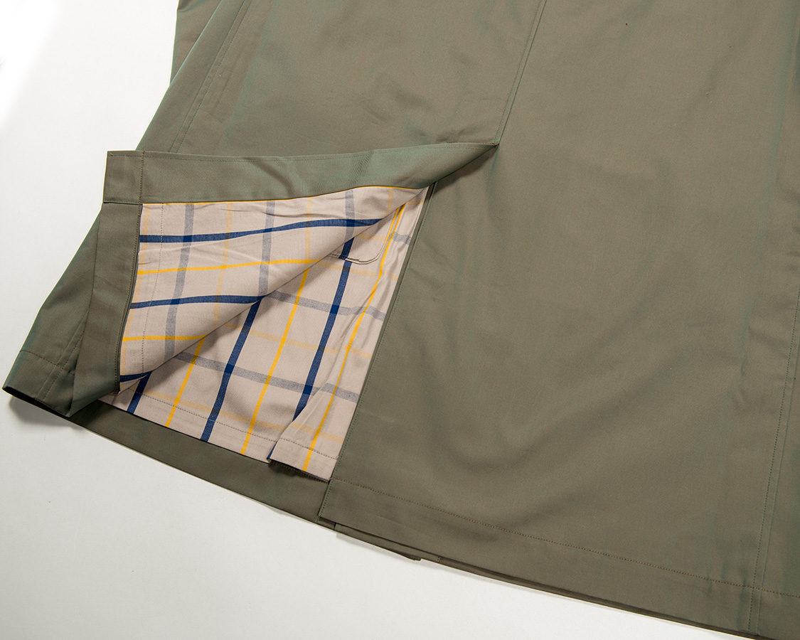 後ろ中心はセンターベント。裾回りもたっぷり作っているのでこれがそんなに開くことは無いのですが、裾回りがひらひらしたときに突っ張らないためのベントです。