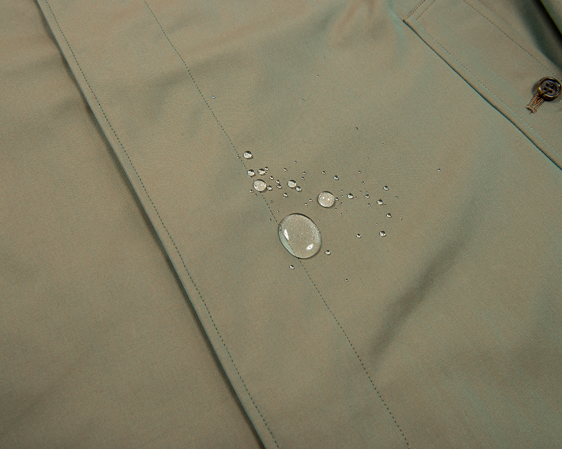 ご覧の通り。かなりの強撥水。ただこれは、生地加工での撥水。高密度に織った綿が撥水性を云々・・・と良く言いますが、私自身、ただ高密度に織った生地でここまでの撥水を持つものは見た事がありません。生地は織り上がった後、基本的に「整理加工」と呼ばれる工程があります。
