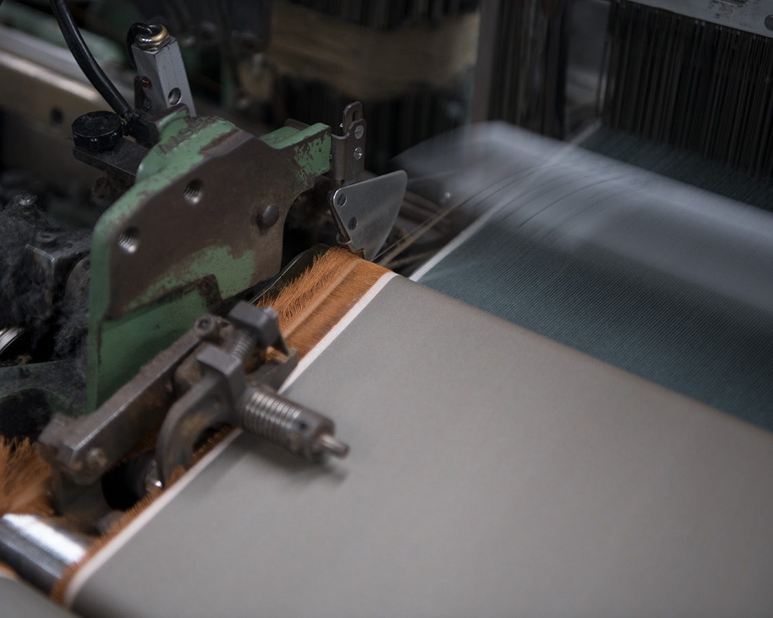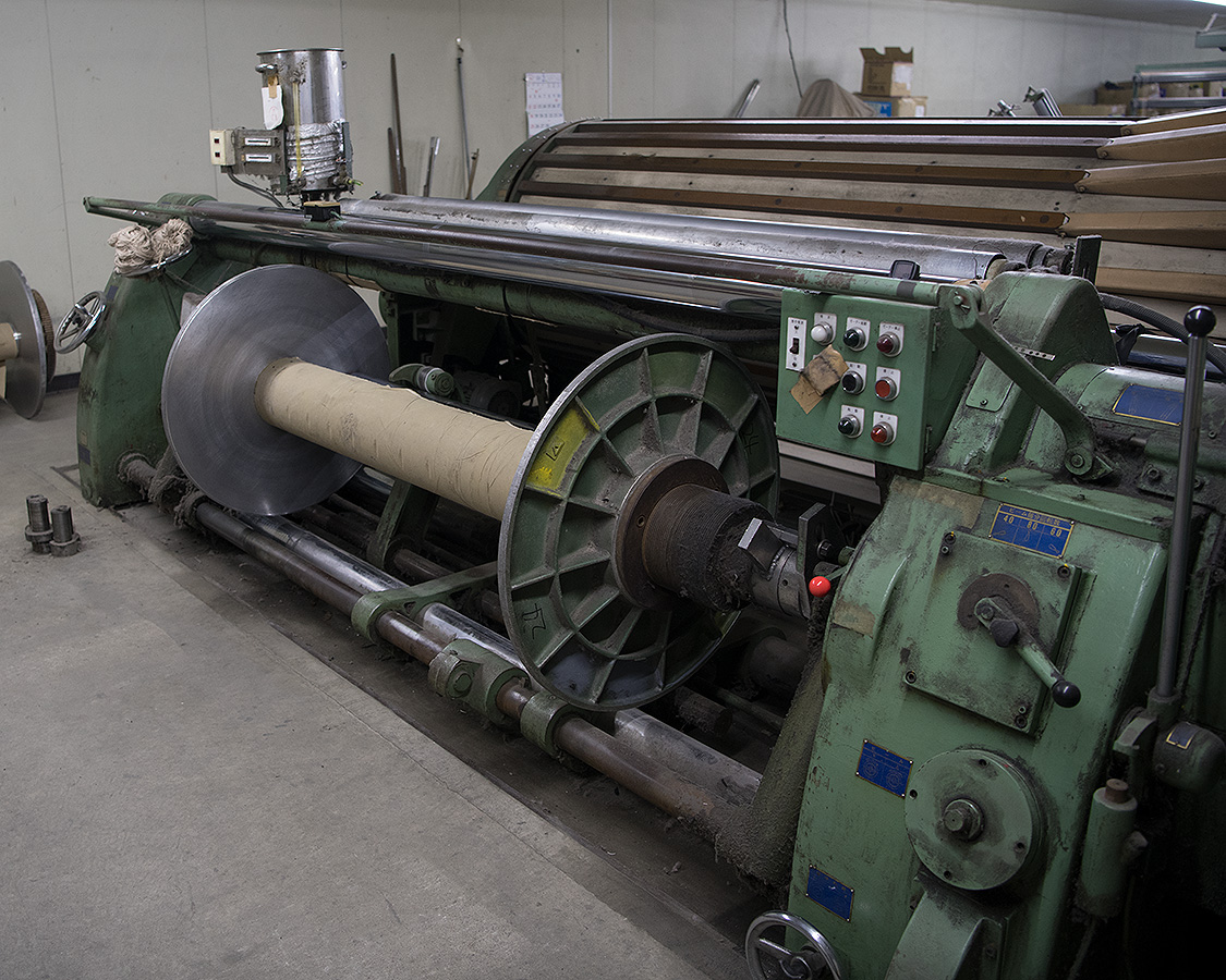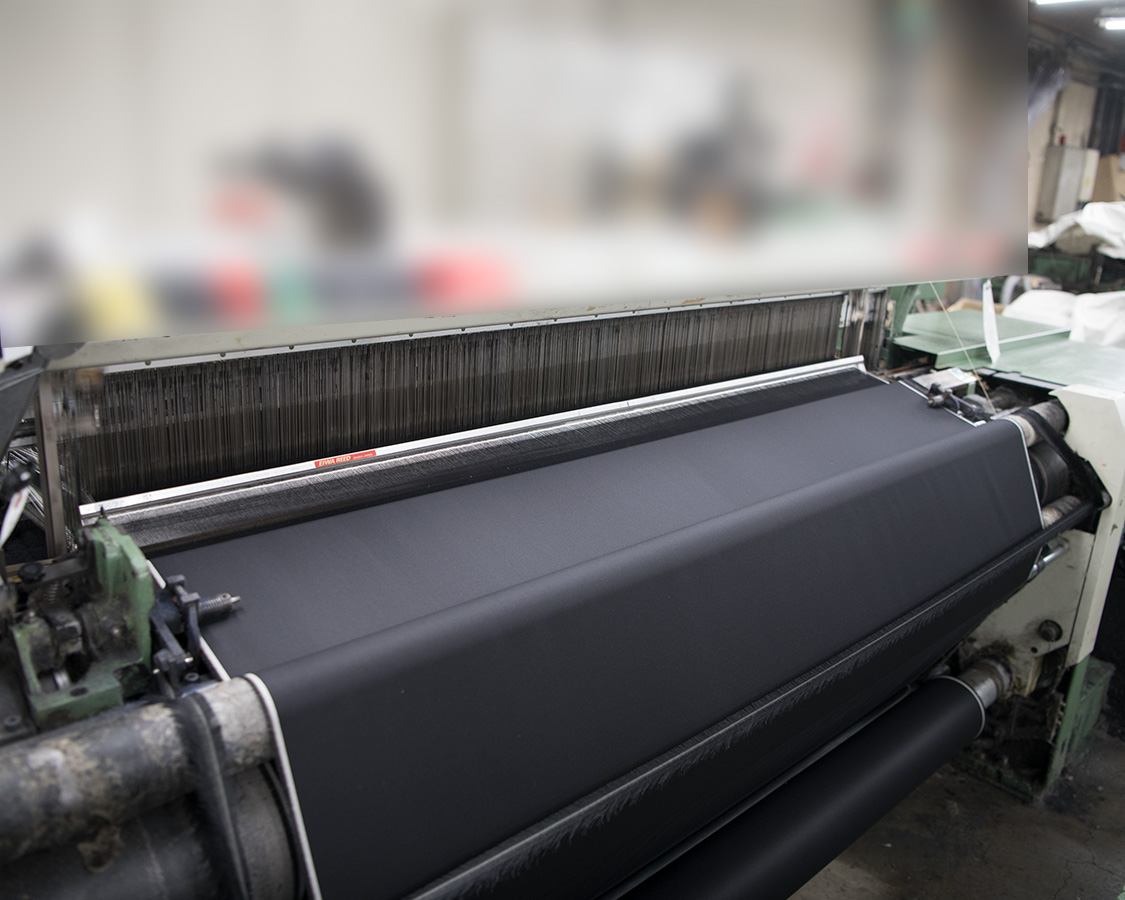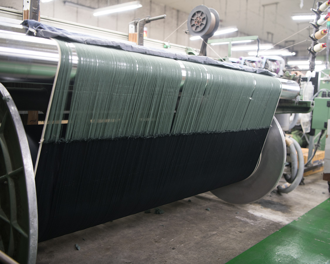 ここで織り上がった生地は、また別の工場へ行き防縮・ねじれ防止・撥水といった生地加工に入ります。