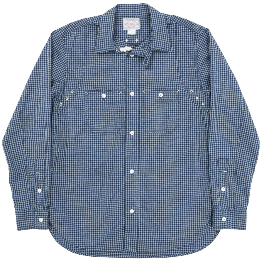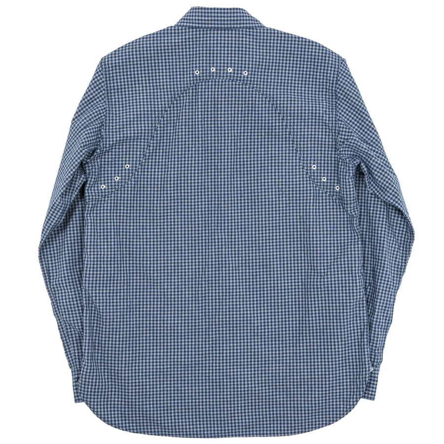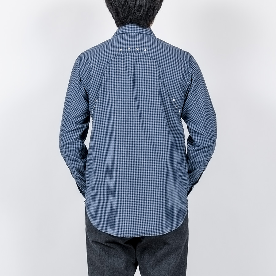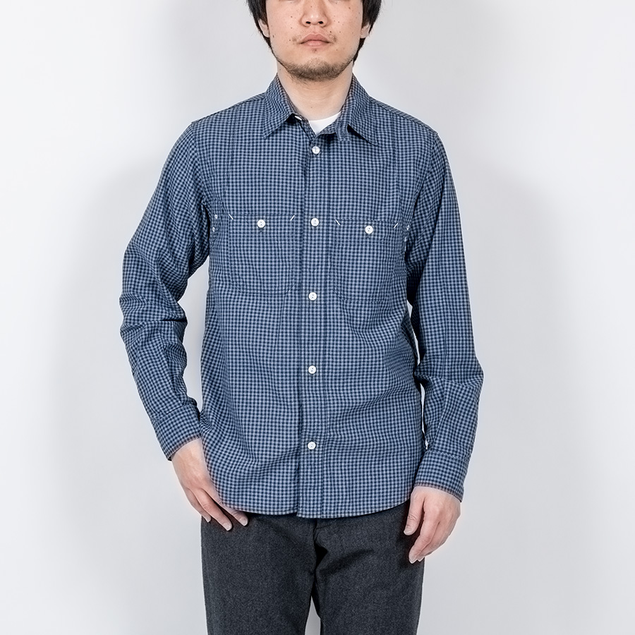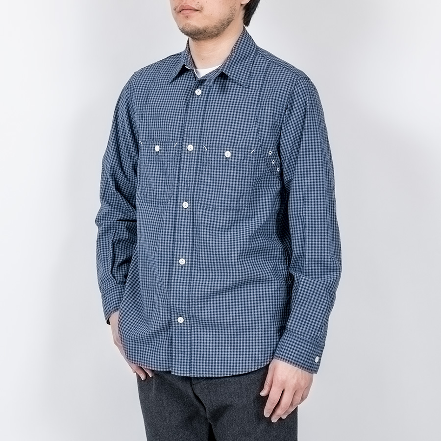 デザインは、フロント・バックに補強布をトリプルステッチで縫いつけ、空気穴が多数開けられています。補強、空気穴 といった機能性がワークシャツらしいデザインに昇華している好例。 素材はすべて耳付き、狭幅のシャンブレーにこだわりました。せっかくクラシックな形なので素材もクラシックに。