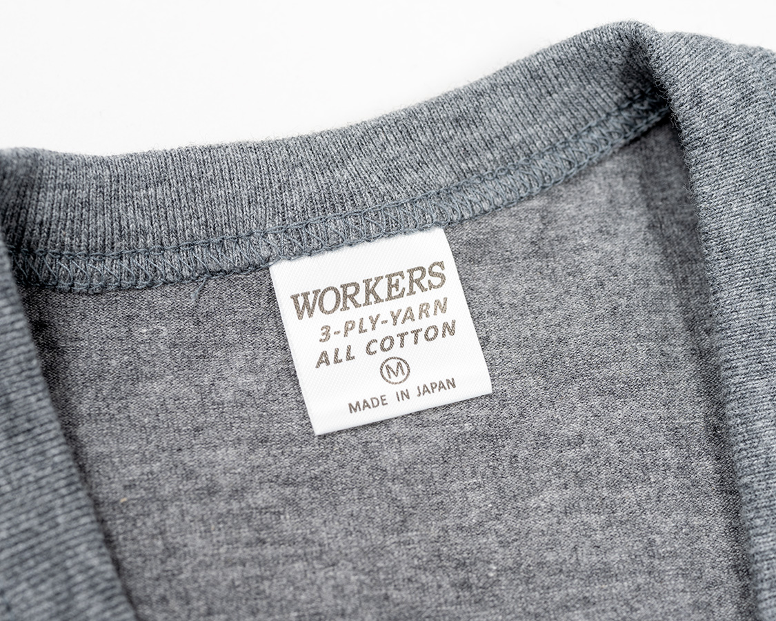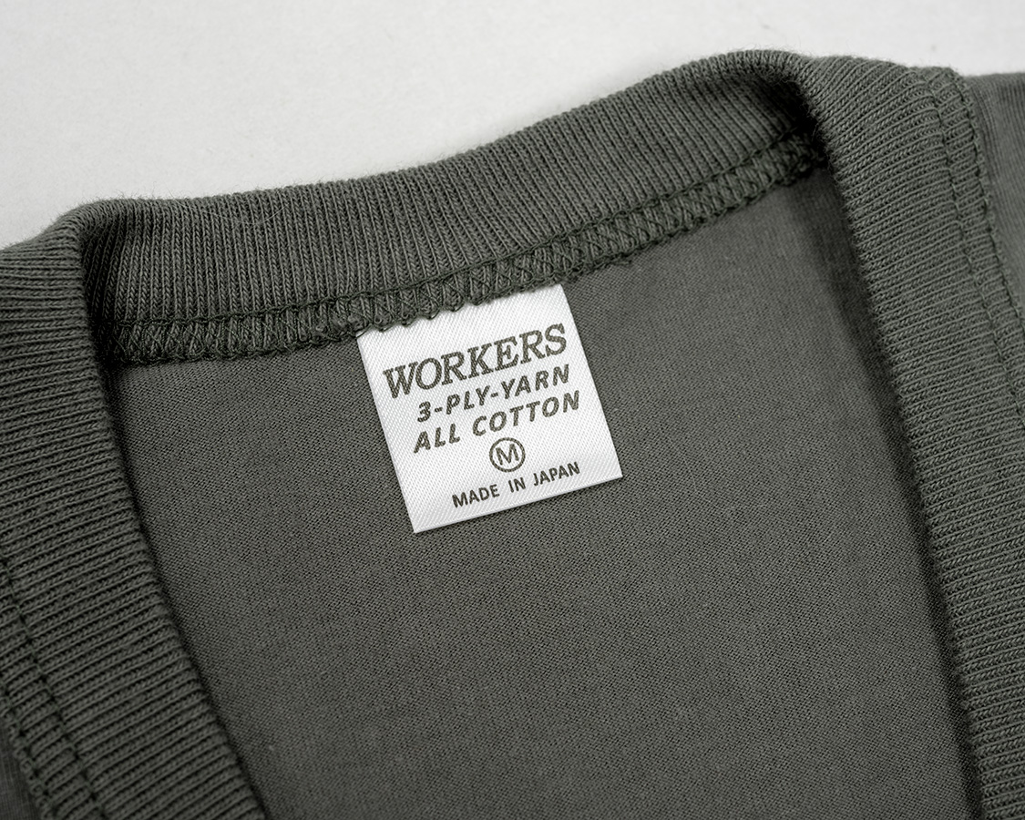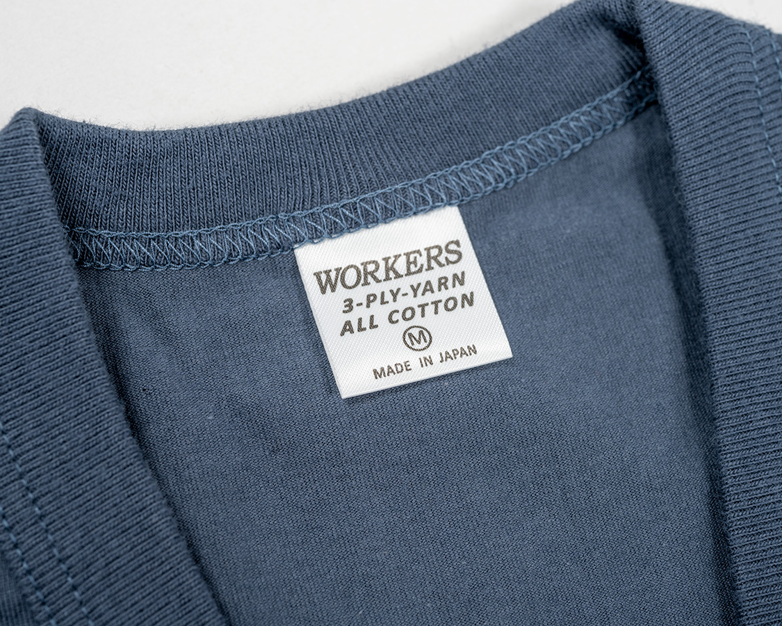 3-PLY-YARN、わざわざ専用ネーム作ってます。ビンテージの洋服見ていて、確か2-PLYだったか・・・でこういう専用ネーム作っているものがありました。「昔の人も材料が違うんだ!って言いたかったんだよなぁ」と共感。素材、特に糸の撚り本数は大事だけどぱっと見ではなかなかわかってもらいづらい部分。